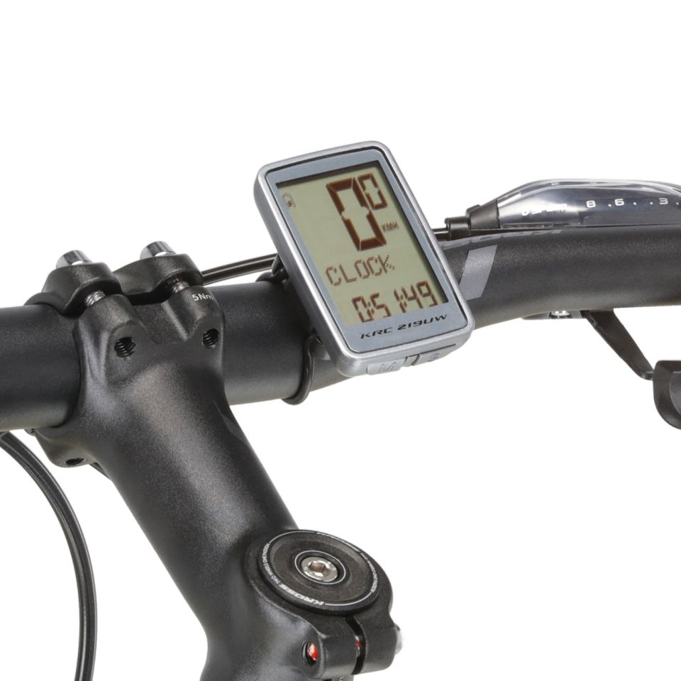 Cyklocomputer s velkým displejem, nabíjením přes USB, vybavený 19 funkcemi, s možností uložit nastavení pro druhé kolo.. Pokročilý bezdrátový cyklocomputer od značky Kross s velkým displejem, nabíjením přes USB a vybavený 19 funkcemi dokonce umožňuje uložit nastavení pro druhé kolo – funkce užitečná zejména pro ty, kteří často mění na svém kole pláště, jež mají různou šířku. Model KRC 219UW je navíc vybaven měřením celkového ujetého počtu kilometrů pro obě nastavení kol.