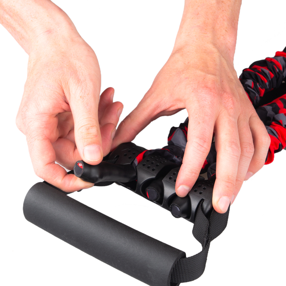 Gumový expandér vhodný k procvičení horní poloviny těla, 3 odnímatelná elastická lana v ochranném rukávu, bederní pás a pohodlné úchopy.. Odporový expandér inSPORTline Striker Triple je posilovací pomůcka sloužící k procvičení svalů horní poloviny těla. Skládá se ze tří elastických lan, která procházejí oky na bederním pásu a jsou napojena na pevný plastový držák, ze kterého dále pokračují úchopy z pohodlného měkkého materiálu.