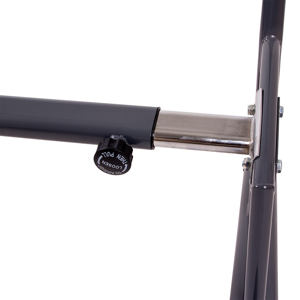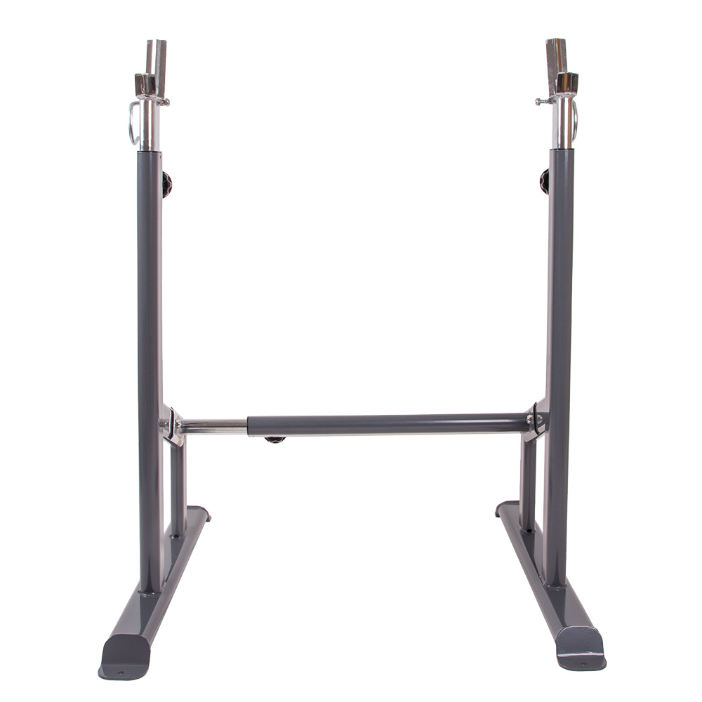 Má výškově nastavitelné polohy v rozsahu 91 – 155 cm umožňující nastavení pro libovolné uživatele nebo různá použití. Plusem je i délkově nastavitelná rozteč v rozmezí 80 – 112 cm, která se přizpůsobí různým délkám vzpěračských tyčí.