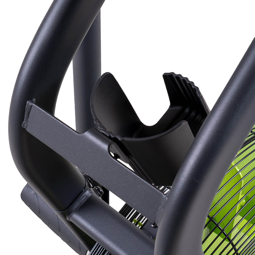Díky vzduchovému brzdnému systému není třeba na rotopedu AirBike Lite jakkoli nastavovat stupeň zátěže tréninku – ventilátor s širokými lopatkami se otáčí podle toho, jak rychle šlapeš. S kadencí šlapání stoupá i zátěž, a to zcela plynule a bez zbytečných přerušení.