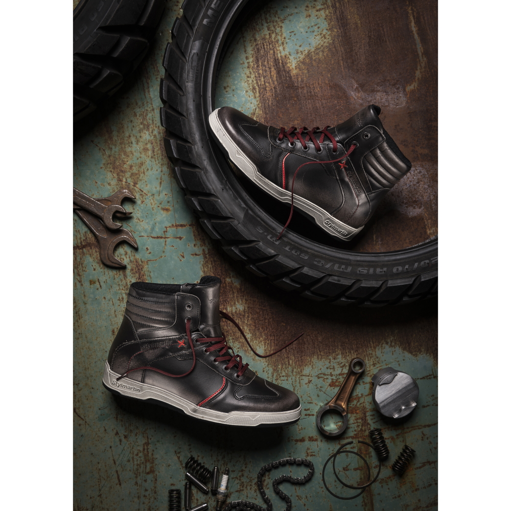 Kožené kotníkové moto tenisky, které jsou velmi pohodlné i pro běžné nošení.. Moto boty Stylmartin Iron jsou stylové kotníkové tenisky vyrobené z full grain vodoodpudivé kůže Graffiti, jsou tedy voděodolné, ale zároveň i prodyšné, a díky vysoké míře komfortu perfektně sednou pro použití na každý den, na motorce i mimo ni. Navrženy pro muže i ženy – tenisky Stylmartin jsou skvělý řešením pro každého motorkáře.Technický popis: