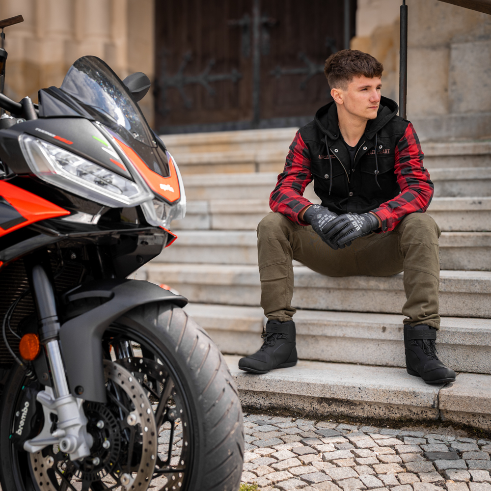 Stylová bunda s dlouhými kostkovanými rukávy. Certifikované a vysoce flexibilní chrániče, ochranné podšití z Dupont Kevlar®.. Chceš si vychutnat vůni benzínu v kvalitní bundě, která tě ochrání? S moto bundou W-TEC Black Heart Radikaal samozřejmost!