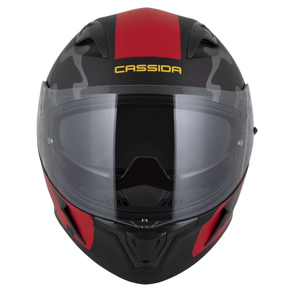Integrálka se sluneční clonou, propracovaným ventilačním systémem, atraktivní grafikou a pohodlným vyjímatelným interiérem.. Přilba Cassida Orbit je integrální moto helma s polykarbonátovou skořepinou, která je přímým nástupcem populárního modelu Integral 3.0. Disponuje sluneční clonou, propracovaným ventilačním systémem a pohodlným vyjímatelným interiérem. Nechybí ani prostor pro komunikátor a helma potěší i ty, kteří využívají svých brýlí, ať už slunečních nebo dioptrických – pro jejich nožičky je v přilbě připraven prostor. V neposlední řadě přilba Cassida Orbit disponuje přípravou pro Pinlock® folii a homologací ECE 22.06 pro evropský trh.Technický popis: