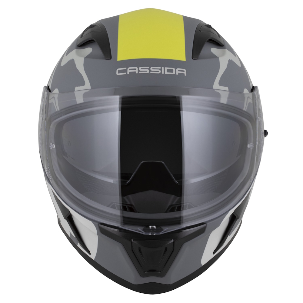 Integrálka se sluneční clonou, propracovaným ventilačním systémem, atraktivní grafikou a pohodlným vyjímatelným interiérem.. Přilba Cassida Orbit je integrální moto helma s polykarbonátovou skořepinou, která je přímým nástupcem populárního modelu Integral 3.0. Disponuje sluneční clonou, propracovaným ventilačním systémem a pohodlným vyjímatelným interiérem. Nechybí ani prostor pro komunikátor a helma potěší i ty, kteří využívají svých brýlí, ať už slunečních nebo dioptrických – pro jejich nožičky je v přilbě připraven prostor. V neposlední řadě přilba Cassida Orbit disponuje přípravou pro Pinlock® folii a homologací ECE 22.06 pro evropský trh.Technický popis: