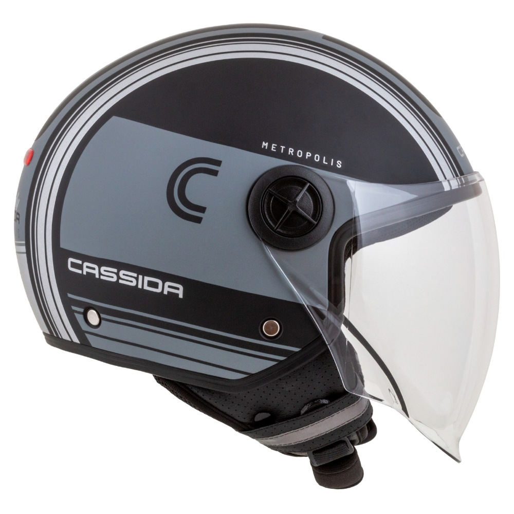 Verze Metropolis Vision se prezentuje dobře viditelnými reflexními prvky grafiky a také reflexní samolepkou Cassida umístěnou v zadních partiích přilby.