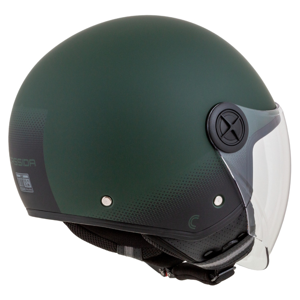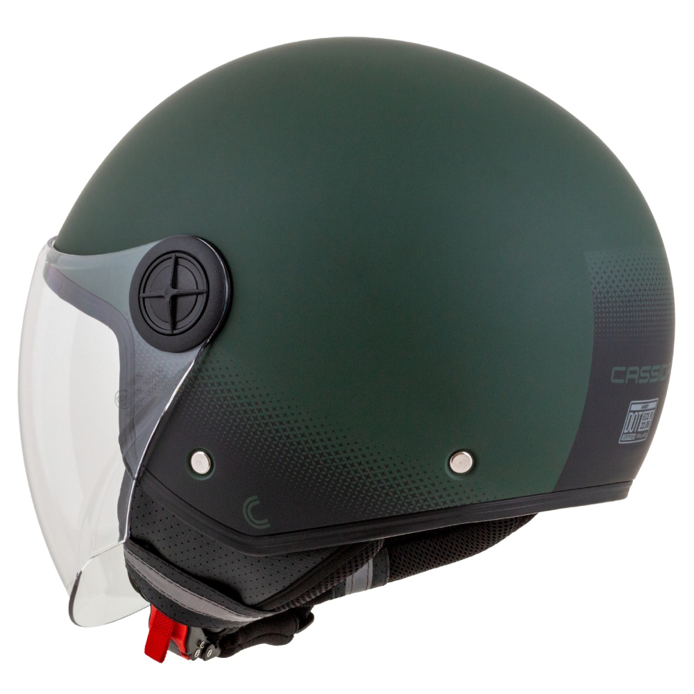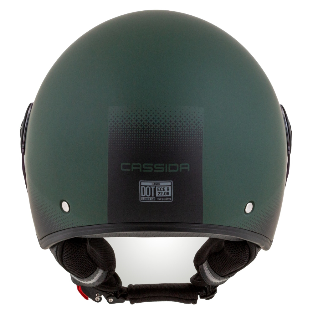 ECE 22.06, všestranná otevřená přilba, čtyři přilby v jedné v rámci dostupného příslušenství.. Přilba Cassida Handy je všestranná otevřená helma, která nabízí čtyři přilby v jedné. V rámci dostupného příslušenství totiž můžete kombinovat dlouhé a krátké plexi, krátký kšilt a záslepky mechanismů plexi.
