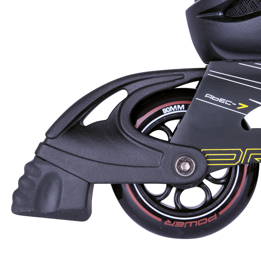 Nad patou je umístěn reflexní prvek, díky kterému bude jezdec lépe vidět za zhoršených světelných podmínek, a je tak zvýšena jeho pasivní bezpečnost. Pro rychlé zastavení je na pravé brusli umístěna brzda.