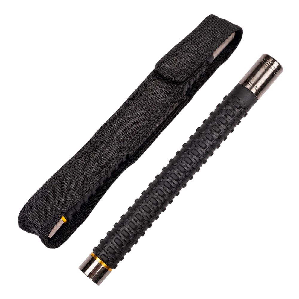 Obušek má gumovou úpravu povrchu rukojeti. Po svém složení má 28 centimetrů a lze tak pohodlně nosit za pasem. K tomu vám poslouží také praktické pouzdro, které je součástí balení.Technický popis: