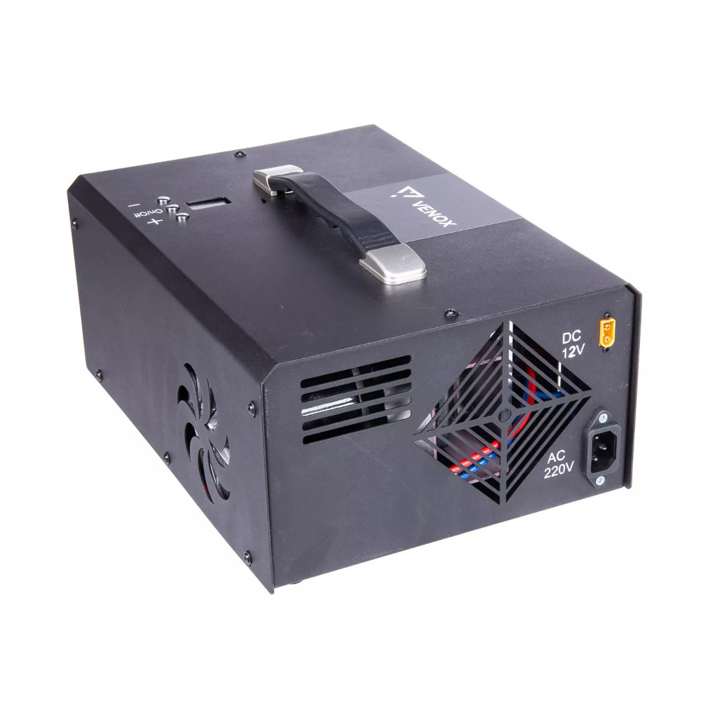 Vysokotlaký kompresor k plnění PCP vzduchovek. Maximální plnící tlak je 310 bar.. Vysokotlaký kompresor Venox 12V je tím nejlepším způsobem pro plnění PCP vzduchových zbraní. Jedná se o model s přehledným digitálním displejem a maximálním plnícím tlakem 310 bar. Tlak na displeji uvidíte s přesností +/- 2 bar. K ovládání kompresoru slouží 3 tlačítka. Přesný rozsah pro přednastavení tlaku je 50-300 bar.