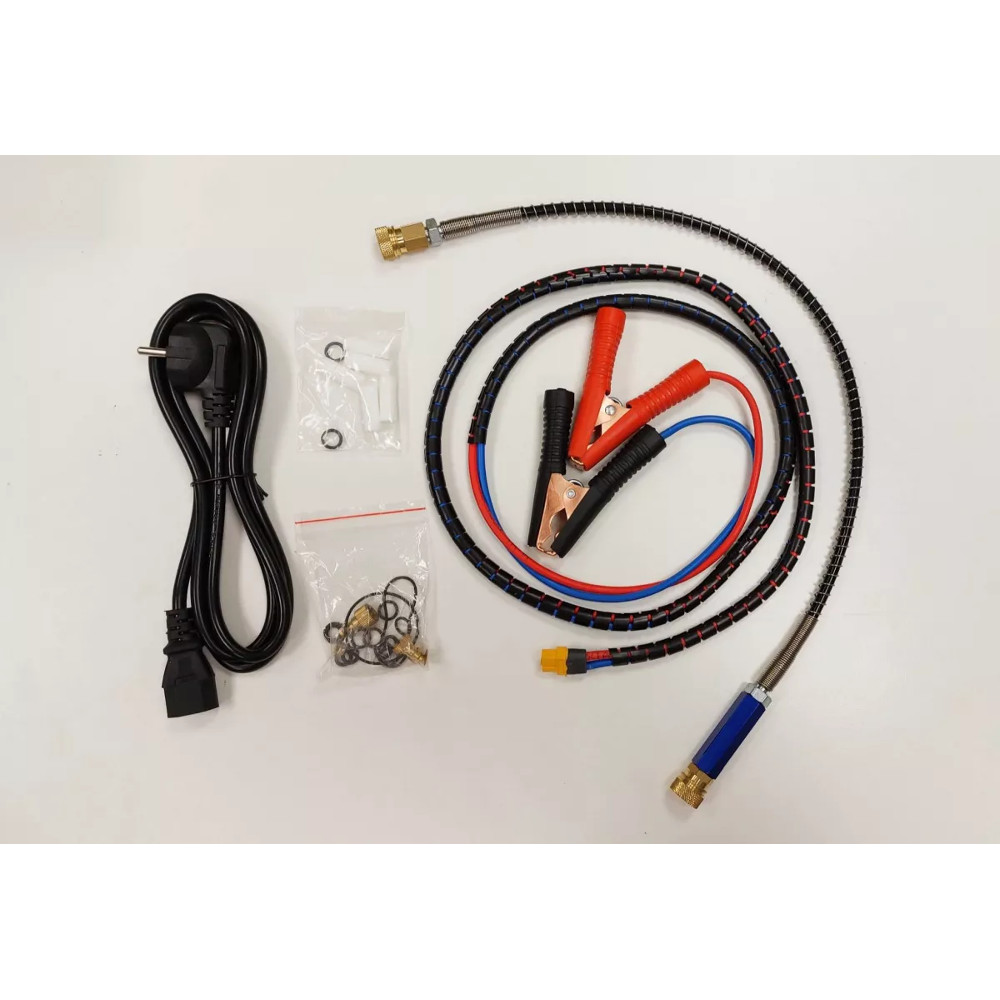 Dalším praktickým prvkem je vestavěný teplotní senzor, který kompresor automaticky vypne, pokud mu hrozí přehřátí, popřípadě i přetížení motoru. Dále se vypne, pokud se napětí dostane pod 10,5V. Nabíjet ho lze buď klasicky ze zdroje o 230V AC nebo pomocí autobaterie 12 V DC. V balení najdete kabely pro oba typy napájení spolu s vysokotlakou hadicí, filtrem a sadou příslušenství.Technický popis: