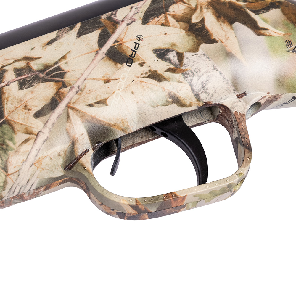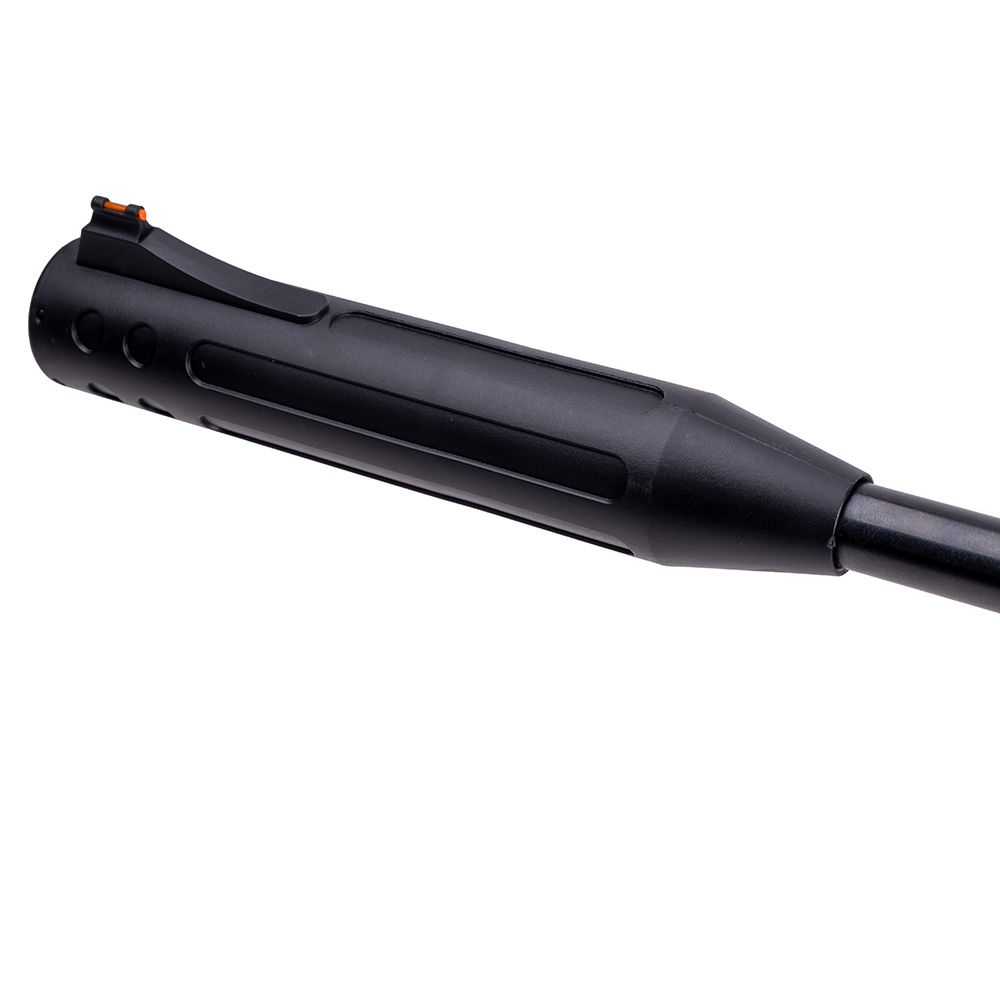 Na konci hlavně najdete integrovaný moderátor, který tlumí zvuk při výstřelu. Během míření pak máte k dispozici plně nastavitelná mířidla a mušku z optického vlákna. Spoušť je opatřena manuální pojistkou, abyste měli nad puškou vždy kontrolu.
