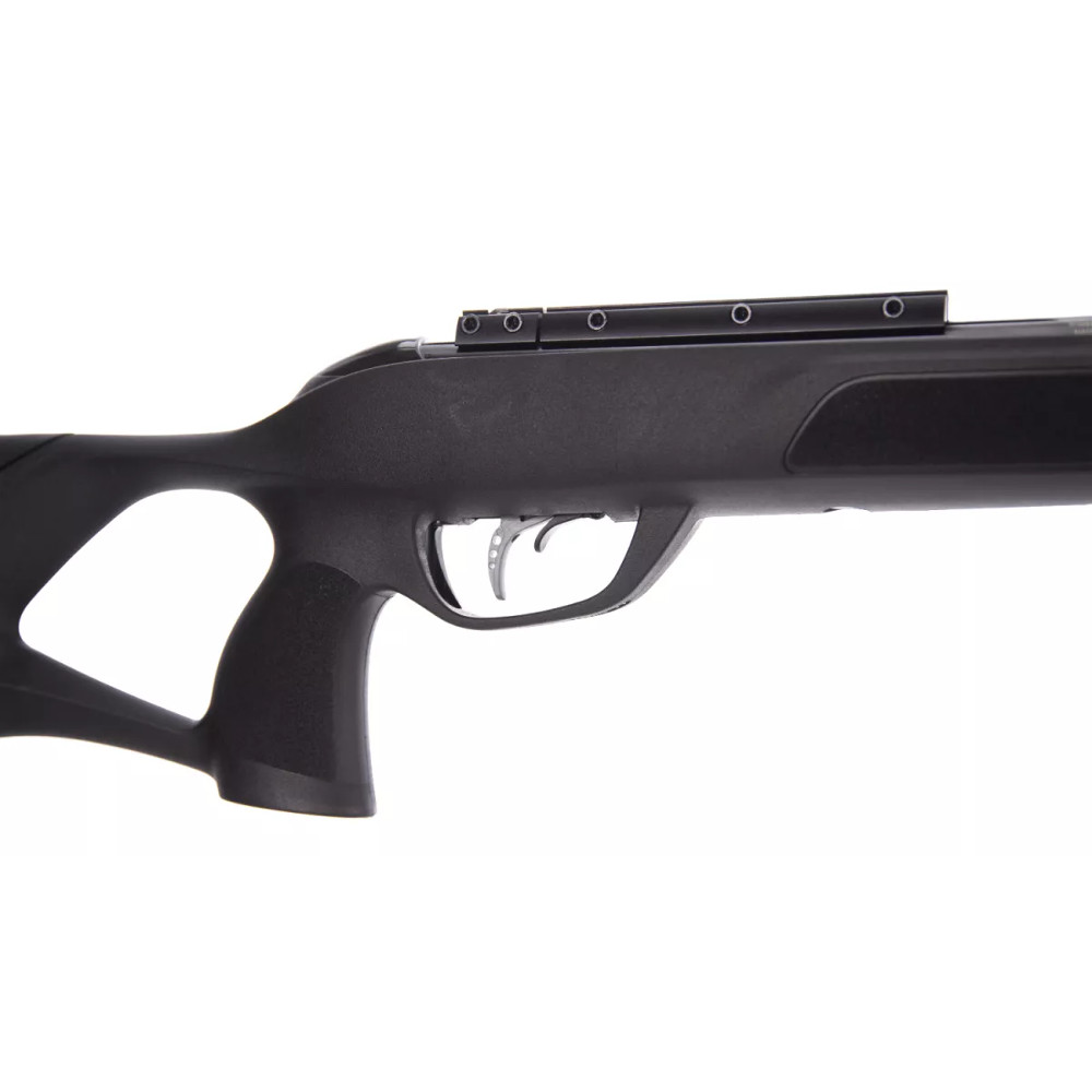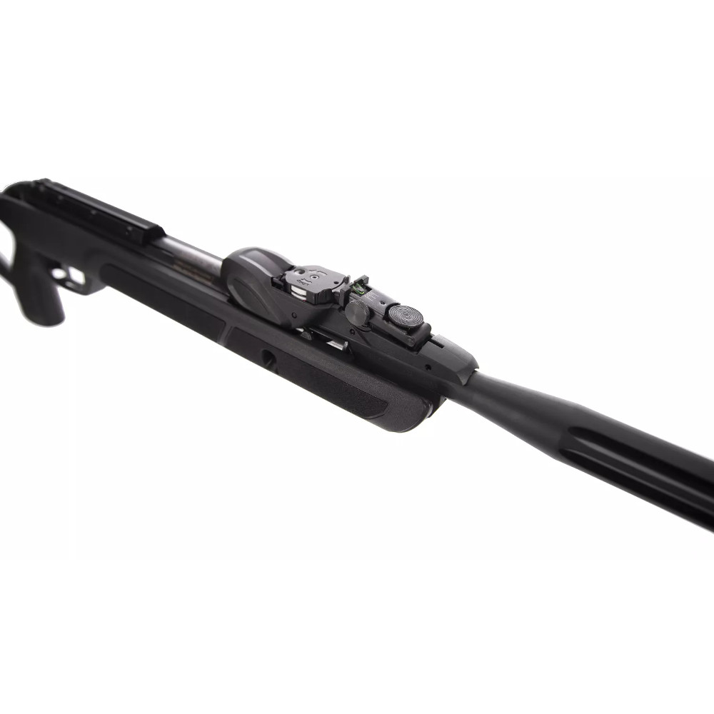 Zásobník je umístěn horizontálně, takže lze použít nižší montáž pro puškohled a zamířit skrze pevná mířidla. Vzduchovka je poháněna pístem se stlačeným plynem. Má proto menší zpětný ráz než pružinová zbraň a také je o něco tišší. Polymerová pažba je tvarovaná univerzálně a je tak vhodná pro praváky i leváky. Spoušť je taktéž plastová a plně stavitelná ve dvou krocích. Manuální pojistku najdete v lučíku před spouští.