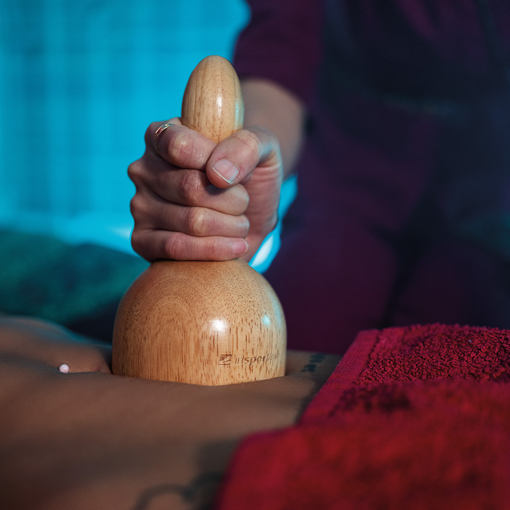 Přírodní lakované kaučukové dřevo je zpracováno tak, aby se nástroj v ruce dobře držel, okraj baňky je navíc zaoblený a přiléhá tak dobře ke konturám těla. Díky průměru 9,4 cm baňku využijete zejména na větších svalových skupinách, například na stehnech, zádech nebo na břichu. Zkušení maséři mohou také použít 2 baňky najednou!Technický popis: