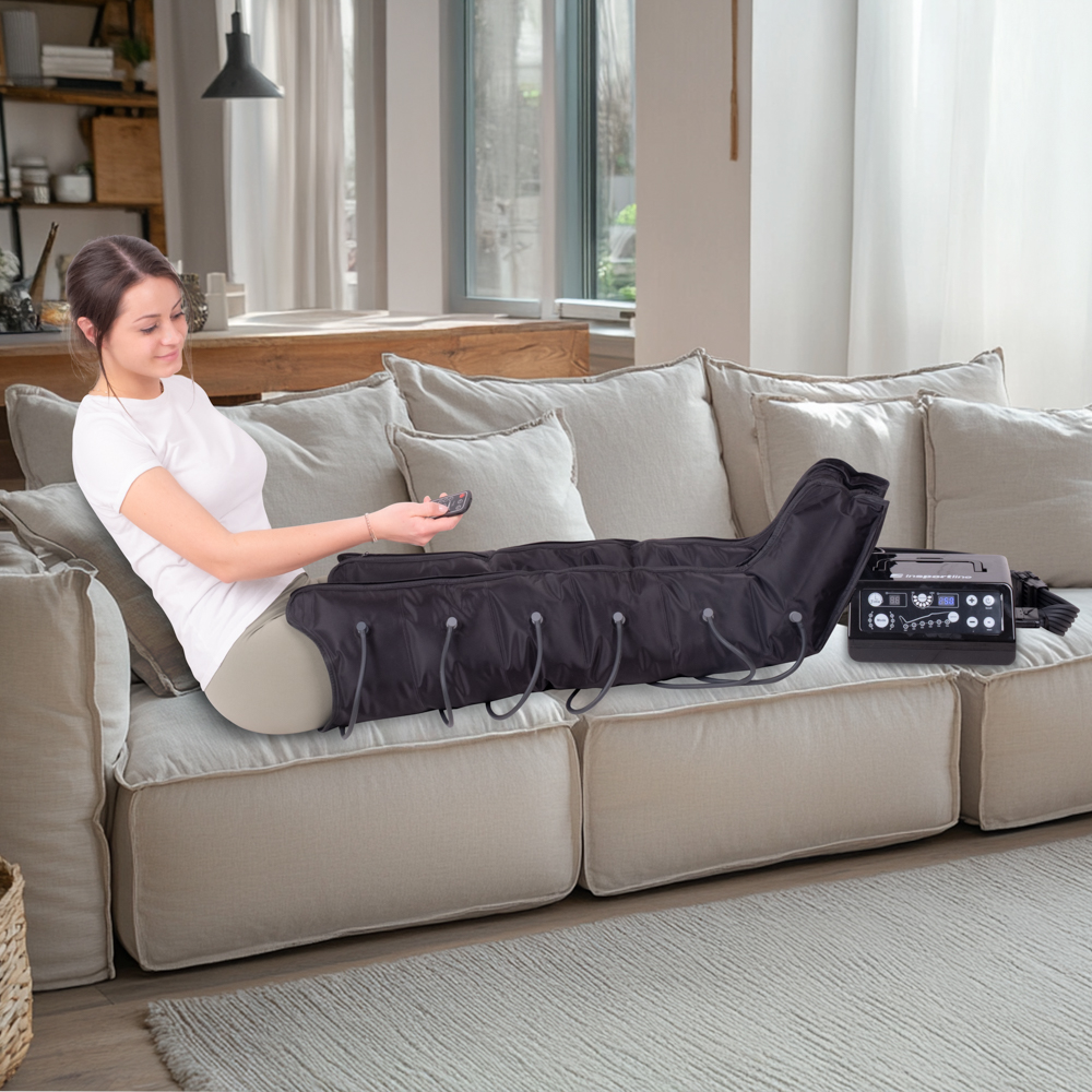 k masáži využívá změnu tlaku ve vzduchových polštářcích (komorách)