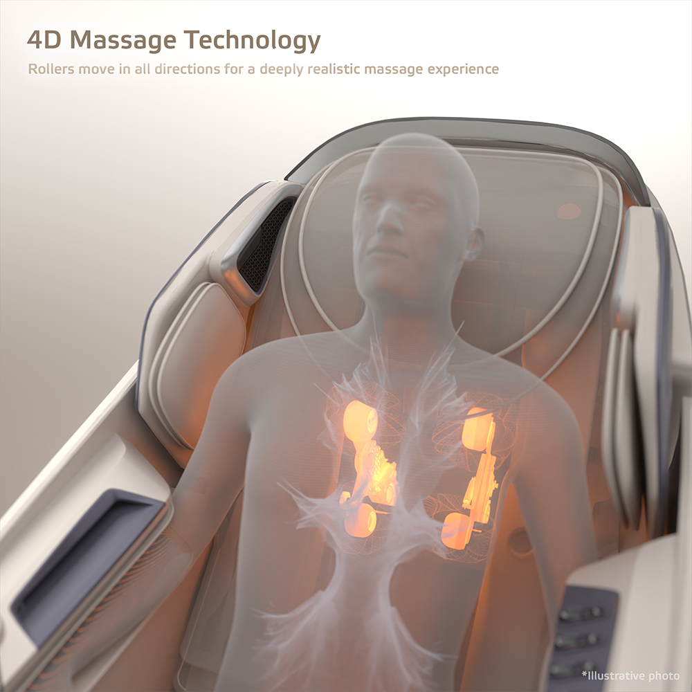 Kombinace 4D masáže, šesti různých technik (včetně Shiatsu, svírání či poklepávání) a celé řady programů vám dopřeje precizní péči přesně tam, kde ji vaše tělo nejvíce potřebuje. Ať už toužíte po jemném uvolnění po náročném dni, nebo po intenzivním promačkání ztuhlých svalů, můžete si vybrat z 20 automatických režimů a několika manuálních nastavení, které přizpůsobíte svým potřebám do posledního detailu. Křeslo se dokonale přizpůsobí tvarům vašeho těla a zajistí plynulý přechod mezi jednotlivými typy masáže.