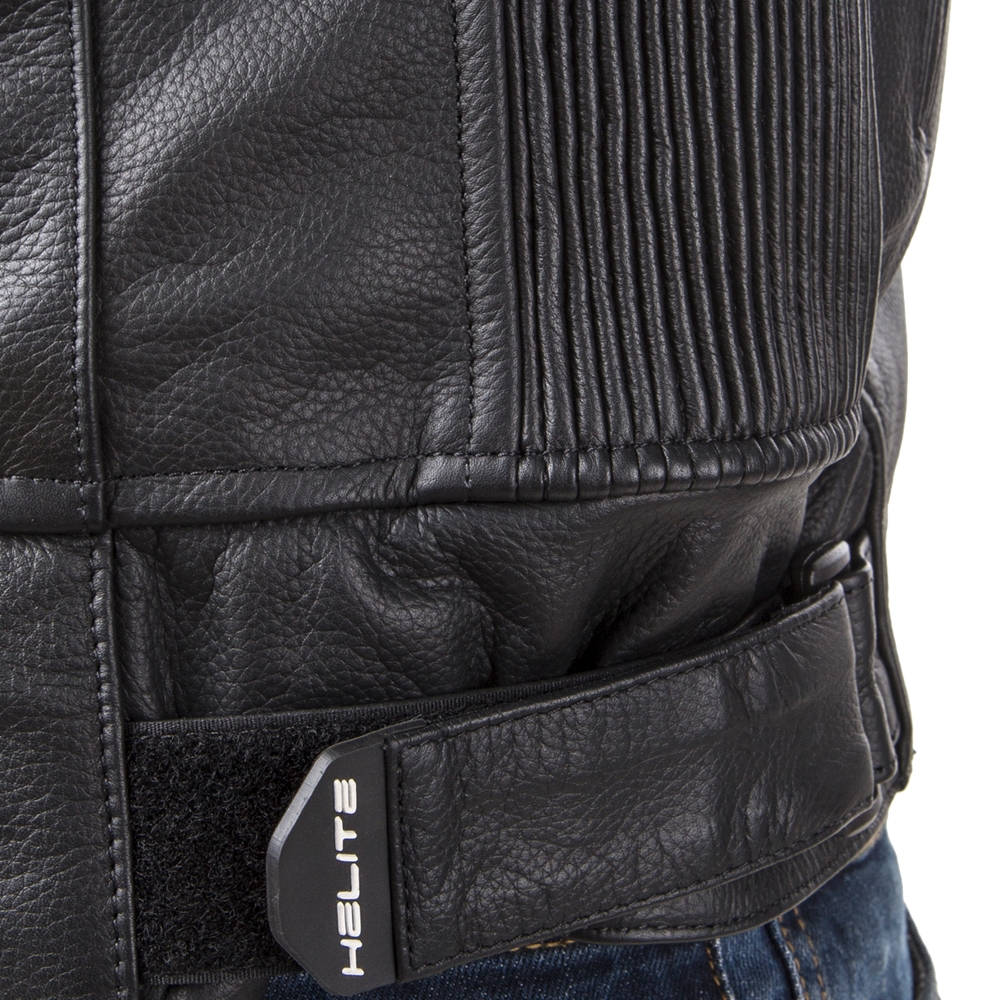 CE homologovaný airbag zcela nafouknutý ve 100 ms, s mechanickou aktivací, odnímatelný zádový protektor, 1,2 mm silná hovězí kůže.. Airbagová bunda Helite Roadster je kožená bunda 4v1 disponující revolučním stupněm ochrany pro motorkáře. Hlavní výhodou je přítomnost nafukovacího airbagového systému s mechanickou aktivací, který dokáže absorbovat náraz svým rozsáhlým povrchem, čímž je energie nárazu efektivně rozptýlena. Navíc k případnému úderu do hlavy dojde se zpožděním a při zpomalení, což ochrání hlavu před traumatickým poraněním mozku.