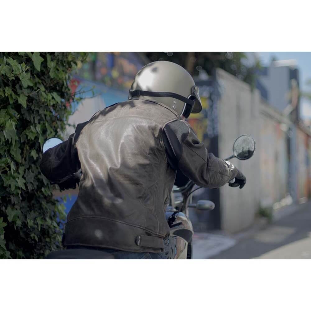 CE homologovaný airbag zcela nafouknutý ve 100 ms, s mechanickou aktivací, odnímatelný zádový protektor, 1,2 mm silná hovězí kůže.. Airbagová bunda Helite Roadster Vintage je kožená bunda 4v1 disponující revolučním stupněm ochrany pro motorkáře. Hlavní výhodou je přítomnost nafukovacího airbagového systému s mechanickou aktivací, který dokáže absorbovat náraz svým rozsáhlým povrchem, čímž je energie nárazu efektivně rozptýlena. Navíc k případnému úderu do hlavy dojde se zpožděním a při zpomalení, což ochrání hlavu před traumatickým poraněním mozku.