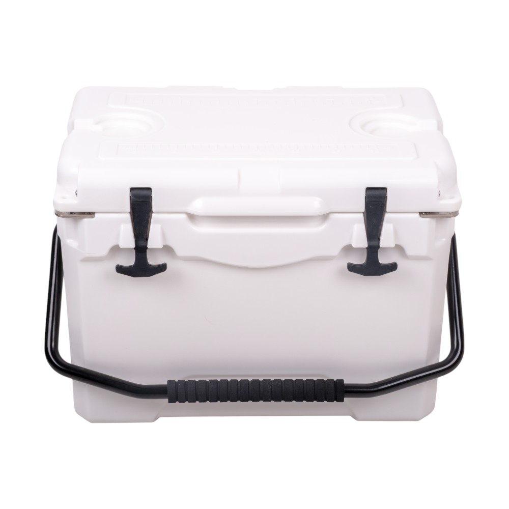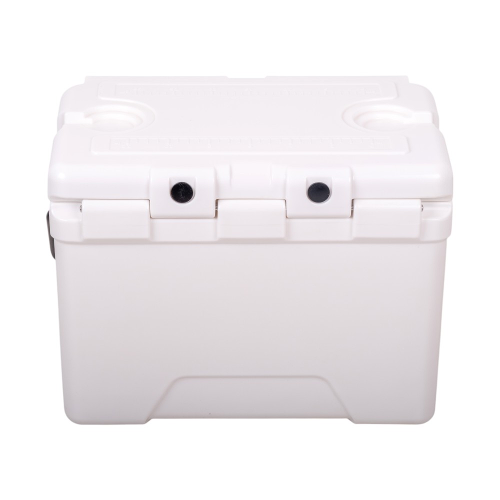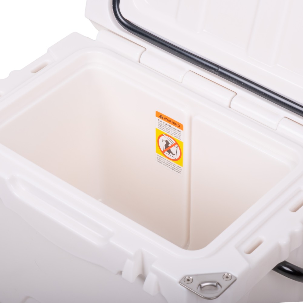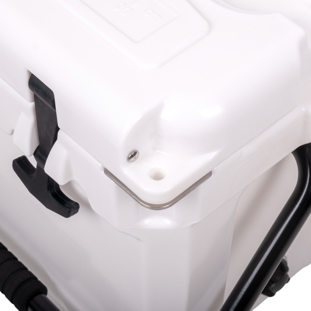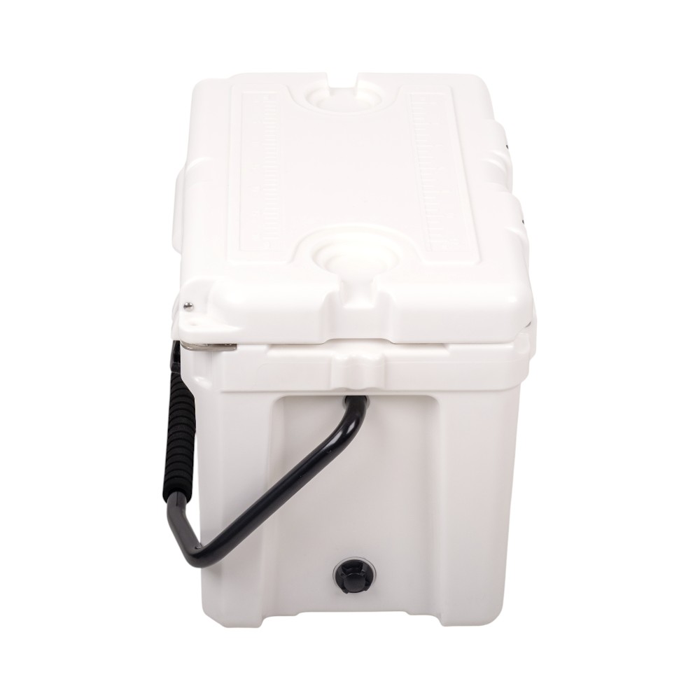 Box je vyroben z odolného plastu LLDPE/HDPE, takže bez problému snese i méně šetrné zacházení. Gumové kotvy zajistí pevné uzavření víka, které navíc nabízí měřítko délky (0–30 cm) – praktické třeba při rybaření. Nechybí ani otvíráky na lahve, dva držáky na nápoje, robustní úchyt s pěnou pro snadné přenášení a šroubovací odtokový otvor, který usnadní vypouštění vody po dni plném ledu.