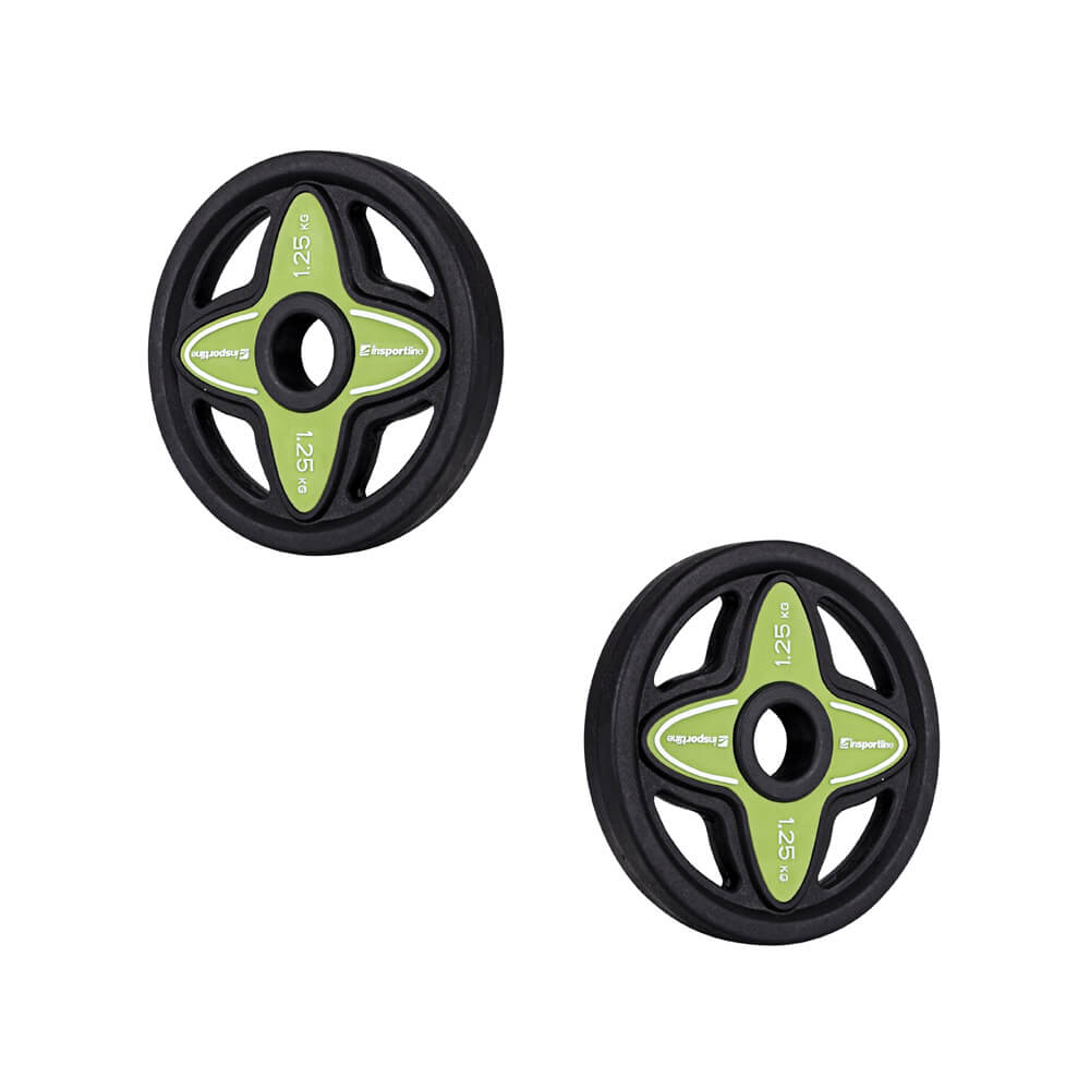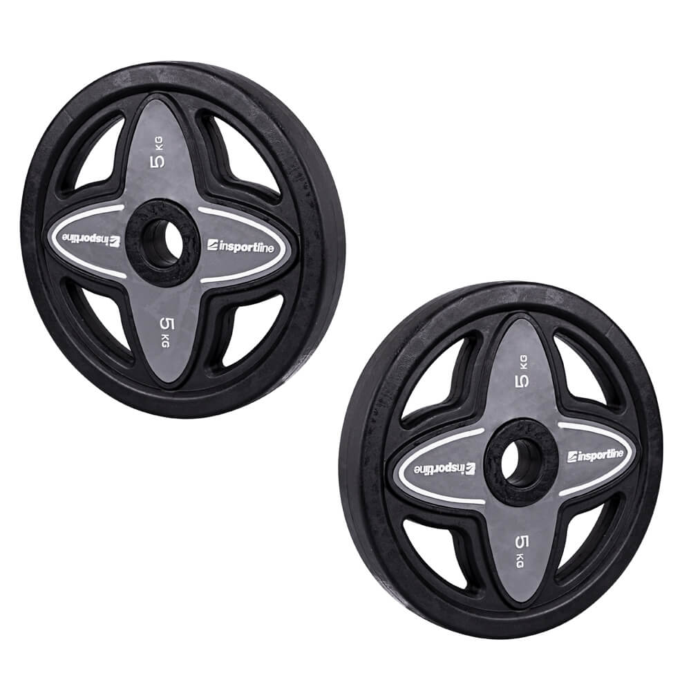 Součástí činkového setu inSPORTline Pumpstar jsou kotouče o hmotnostech 1,25 kg, 2,5 kg a 5 kg. Jsou vyrobeny z oceli, která má dlouholetou životnost. Povrch kotoučů je tvořen speciální gumovou vrstvou se zvýšenou odolností proti opotřebení. Kotouče jsou dále opatřeny otvory, díky kterým je možné s kotouči snadněji manipulovat nebo cvičit samostatně. V setu nechybí ani dvojice svorek pro maximální bezpečnost při tréninku.