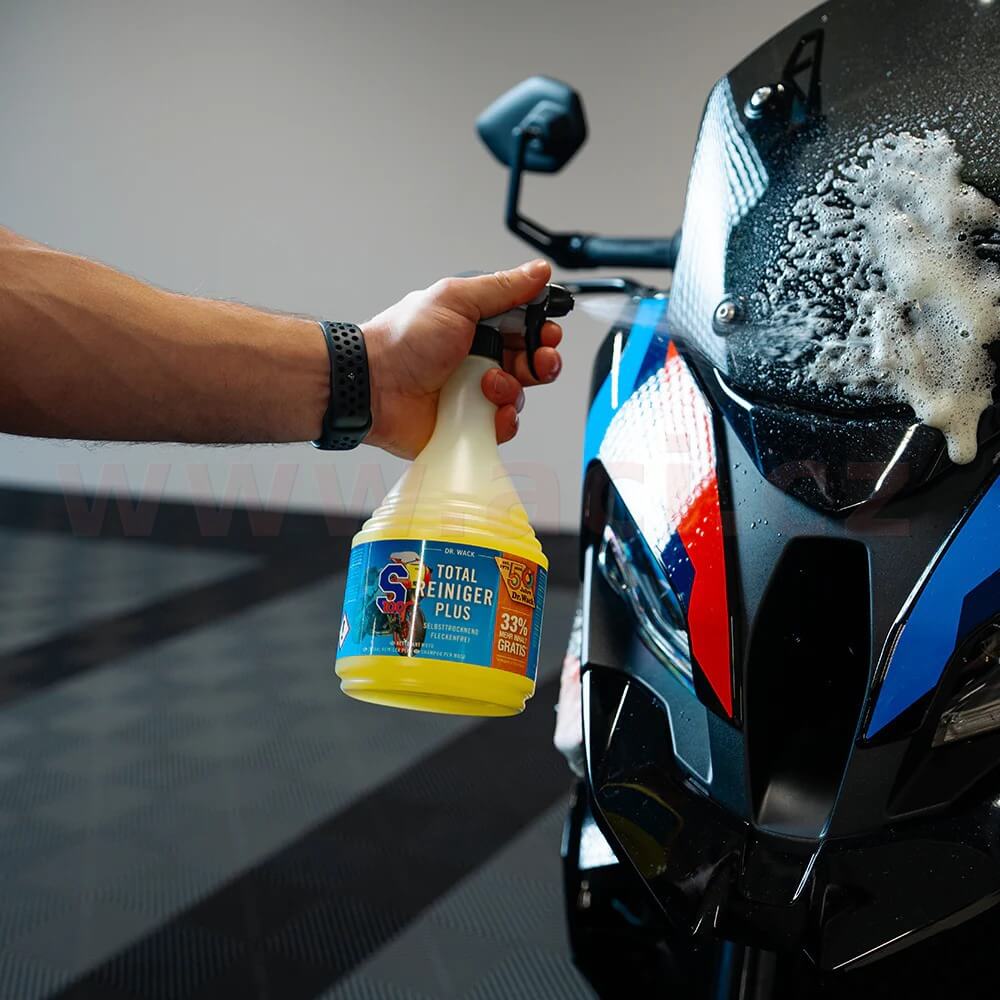 Velice silný čistící prostředek na rychlé a jednoduché mytí motocyklu.. S100 Total Cleaner je velice silný čistící prostředek na rychlé a jednoduché mytí motocyklu. Bez námahy a bez zbytků odstraňuje nečistoty, zbytky hmyzu, mastnotu a olejové skvrny.Technický popis:
