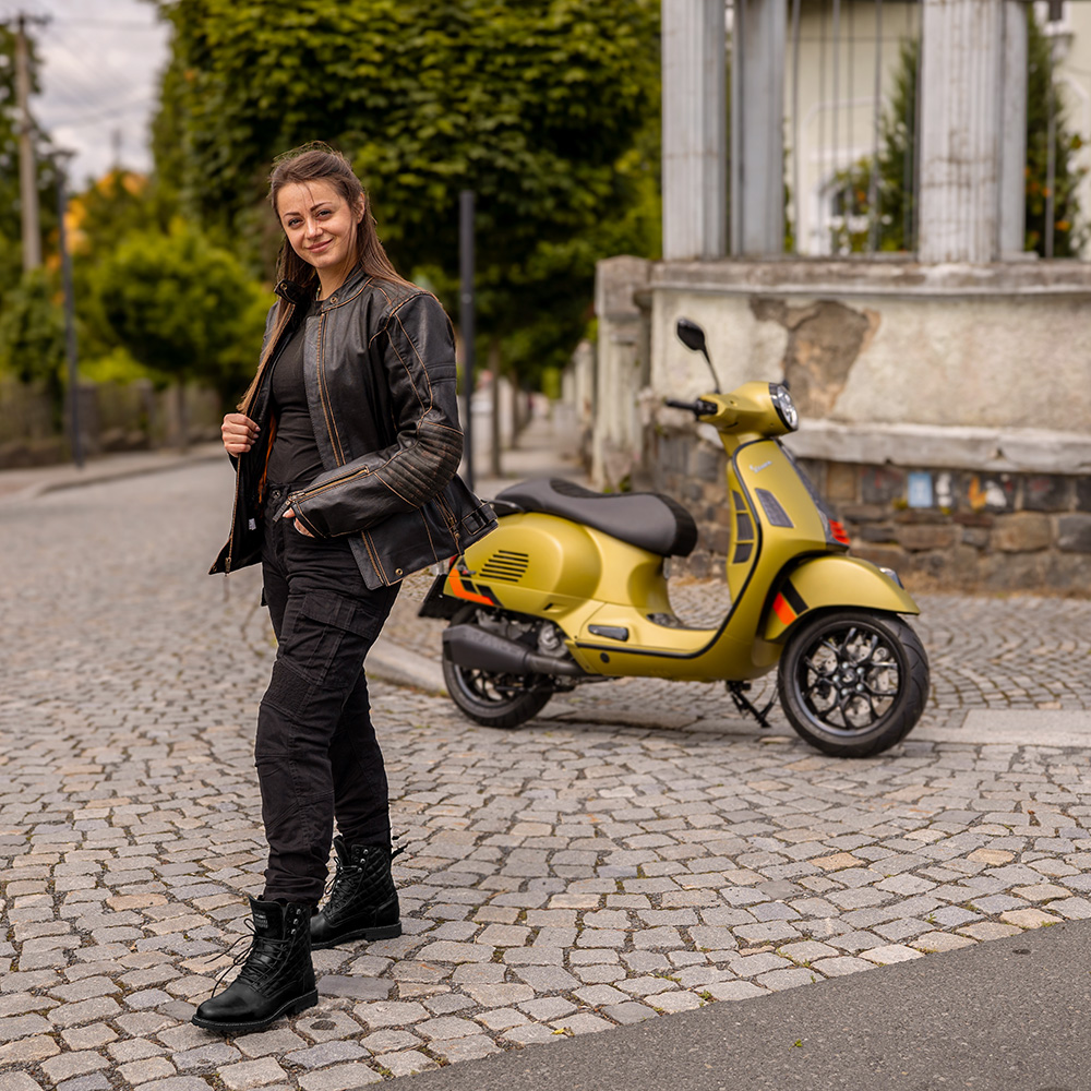 Odolný svrchní materiál z pravé kůže s tloušťkou až 2 mm vydrží náročné podmínky a přitom si zachovává elegantní vzhled. Dámské moto boty Leocia jsou odpovědí na otázku, co vznikne, když se spojí bezpečí, styl a svoboda.Technický popis: