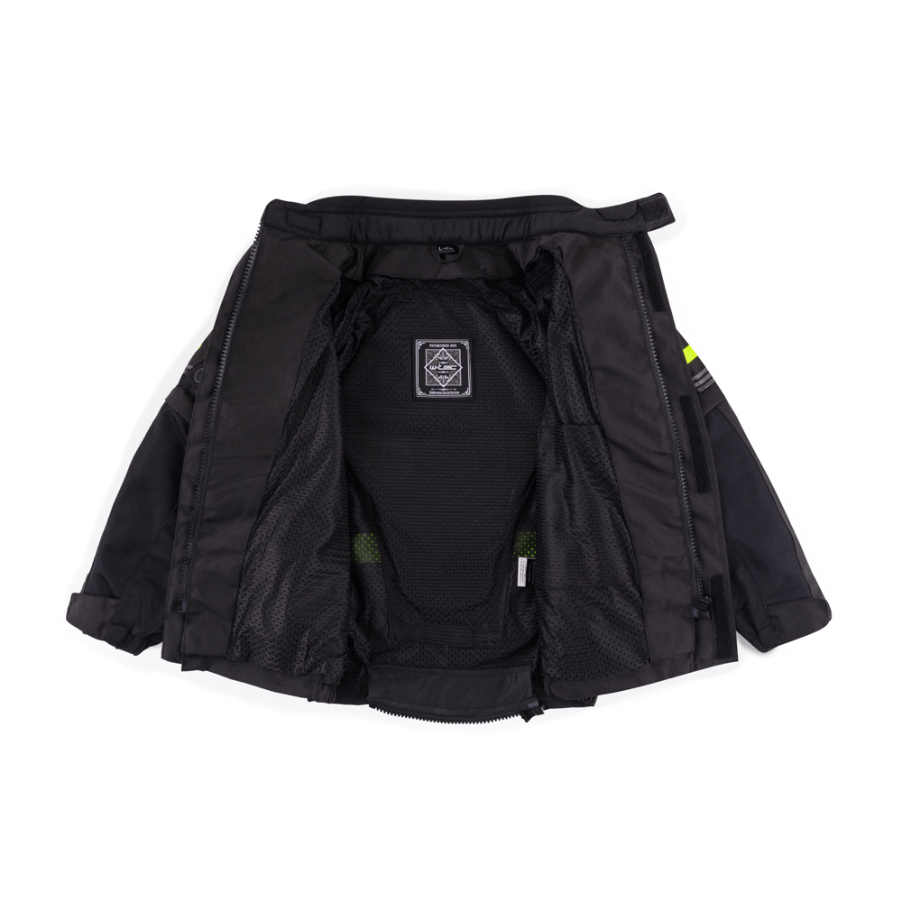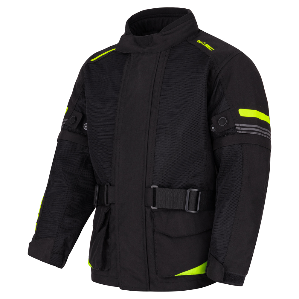 Dětská rostoucí moto bunda W-TEC Pinapoco černá-fluo XXL/3. XL – ideální volba pro malé jezdce. Bezpečná, odolná a pohodlná.