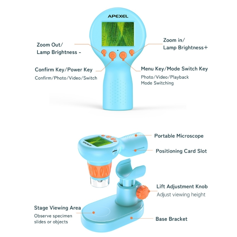 Intuitivní dětský mikroskop podporuje zábavné objevování, nabízí jasný 2″ displej, zoom až 800x, nastavitelné LED osvětlení a snadné ovládání, včetně příslušenství pro první experimenty.. Dětský digitální mikroskop Apexel otevírá bránu do fascinujícího mikrosvěta a probouzí v dětech přirozenou touhu objevovat. Díky intuitivní konstrukci, jasnému 2″ displeji a silnému digitálnímu zoomu dokáže přiblížit rostliny, hmyz i drobné struktury tak, jak je děti ještě nikdy neviděly. Kombinuje jednoduchost, bezpečnost a moderní funkce, takže se stává ideální pomůckou pro domácí experimenty i školní projekty.