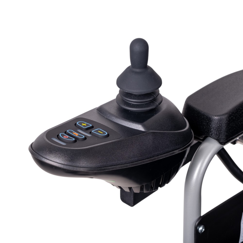Vozík ovládaný joystickem! S odpružením, elektromagnetickou brzdou, 2x motor s výkonem 250W, skládací systém i sklápěcí područky a nastavitelné opěrky nohou.. Plňte si své sny s elektrickým invalidním vozíkem inSPORTline Svanson.