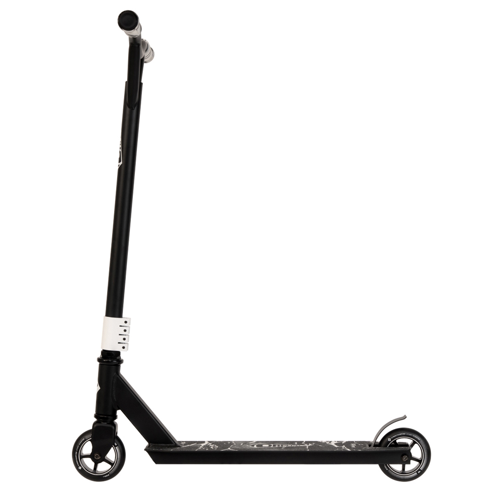 Pevná hliníková deska ze slitiny 6061 a ocelová BMX řídítka zajišťují maximální stabilitu při tricích, zatímco kolečka s kovovým jádrem a tvrdostí 88A obstojí i při tvrdších dopadech.