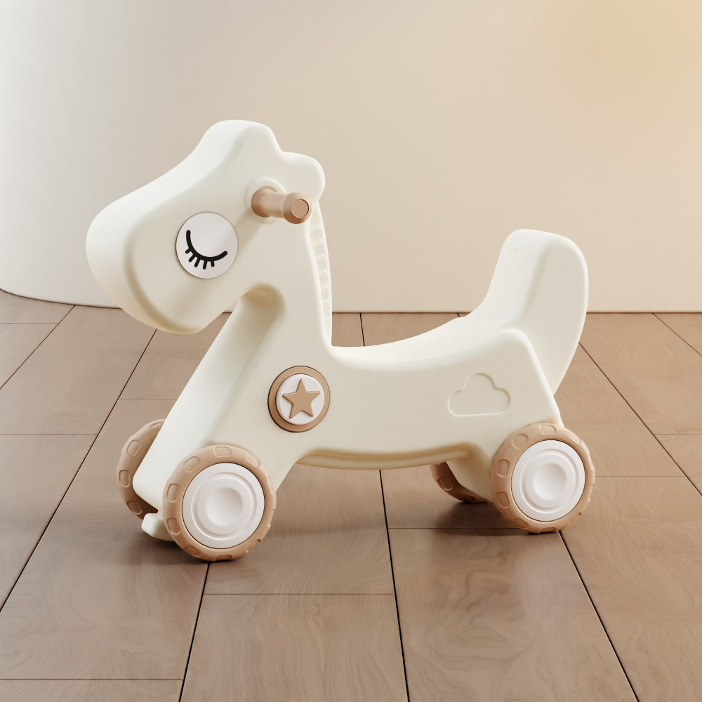houpací koník na kolečkách, který funguje i jako odrážedlo