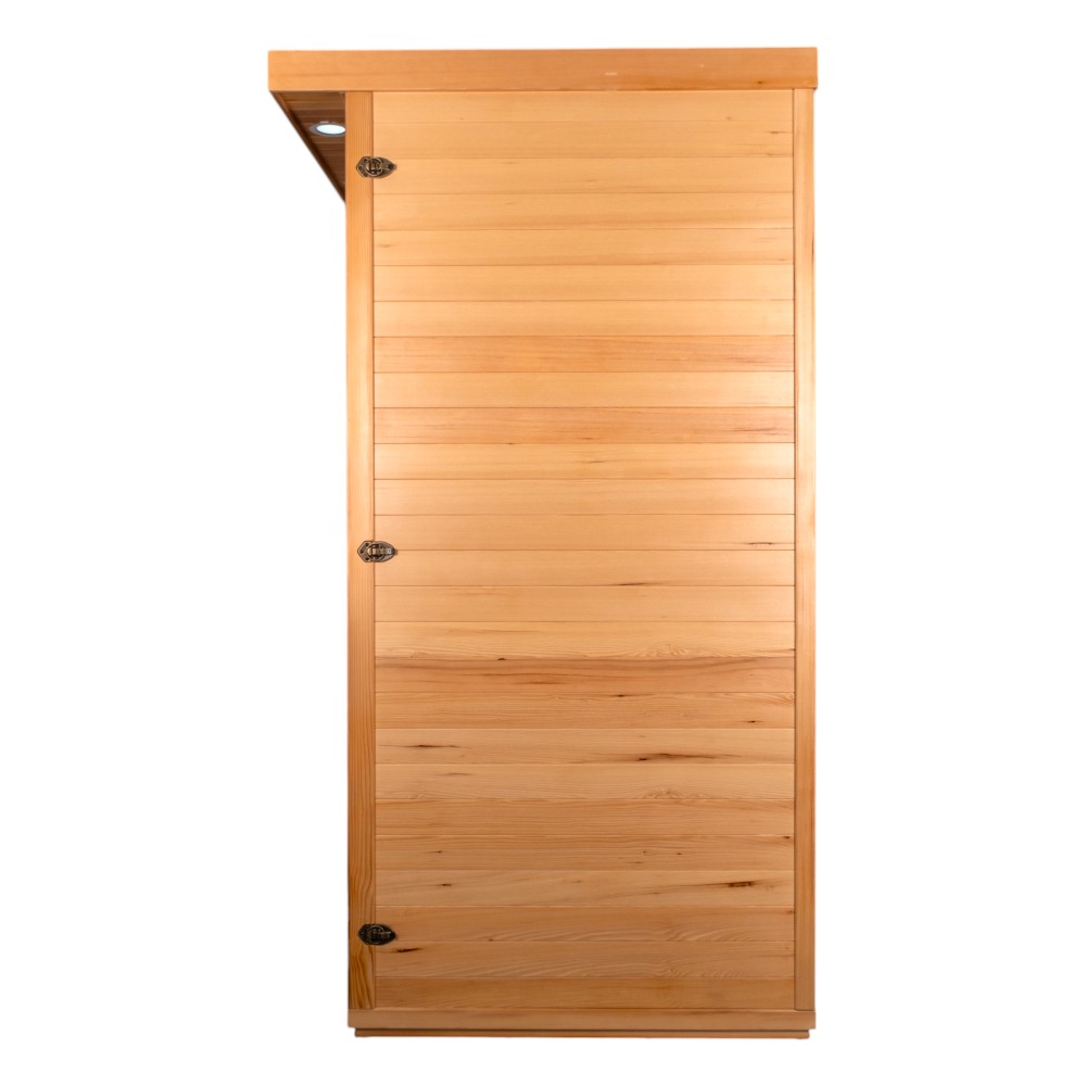 Díky kompaktním rozměrům 90 x 90 cm a výškou 190 cm je sauna ideální pro jednu osobu a snadno ji umístíte i do menšího prostoru. Přesto v sobě ukrývá skvělé technologie a funkce, které z ní dělají skutečný klenot domácího wellness.
