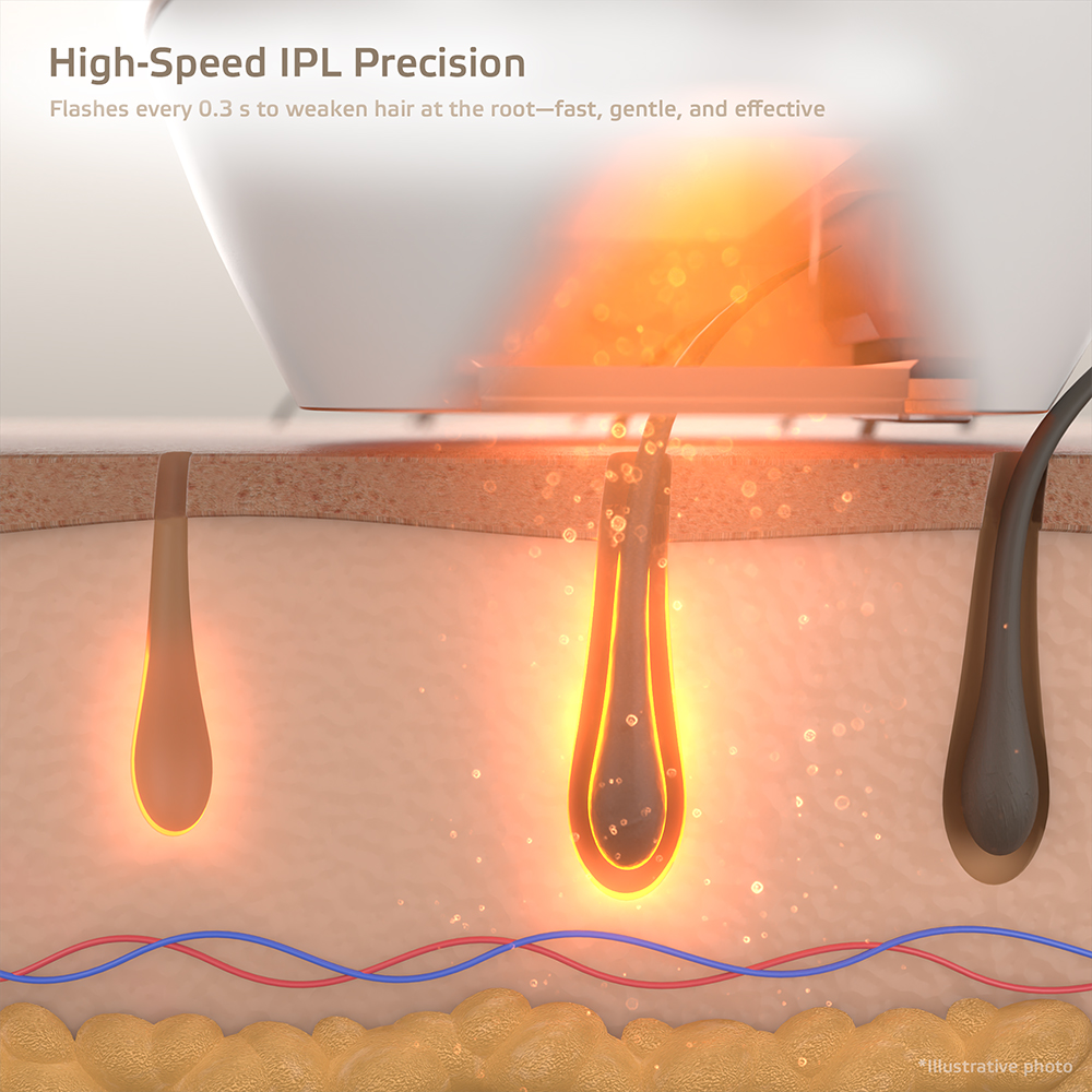 Vysokorychlostní IPL technologie s frekvencí záblesků každých 0,3 sekundy zasahuje přímo ke kořínkům chloupků a přerušuje jejich růstový cyklus. Výsledkem je postupné řídnutí ochlupení a nakonec jeho úplné vymizení. Díky rovnoměrnému rozložení světelné energie je ošetření nejen efektivní, ale i velmi pohodlné – bez pálení, podráždění nebo nepříjemného pocitu. inSPORTline Aphira tak nabízí profesionální výsledky v pohodlí domova, bez nutnosti návštěv kosmetického salonu.