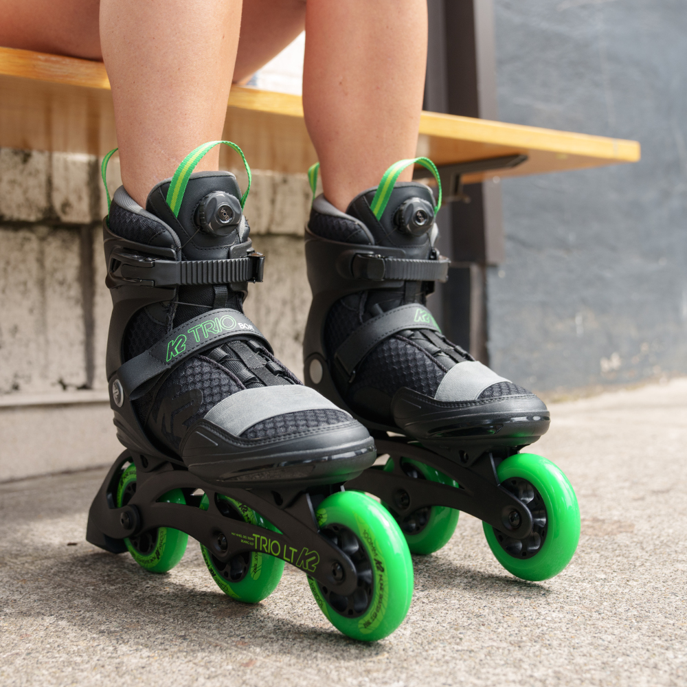 Rychlé tříkolečkové brusle s unikátním upínacím systémem na jeden pohyb! Hliníkový rám a špičková ložiska se postarají o plynulou a nespoutanou jízdu!. K2 Trio LT 100 BOA jsou super rychlé brusle pro všechny, kteří inline bruslení považují za životní styl! Velká kolečka o průměru 100 mm ocení zejména ostřílení bruslaři, kteří jsou zvyklí na svižnou a nespoutanou jízdu. Perfektní jízdní vlastnosti pak zajišťují špičková ložiska ILQ 7 od amerického výrobce Twincam.
