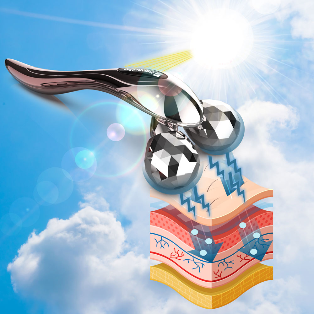 Dvě hlavice 3D válečku mezi sebe vtáhnou kůži a promasírují svaly pod ní. Díky tomu se svaly příjemně uvolní a dojde k prokrvení tkání. Zároveň při tlaku/tahu směrem nahoru dochází k pozvedání kontur obličeje. Pravidelnou masáží docílíme mimo jiné pevnější pokožky a mírnějších otoků.