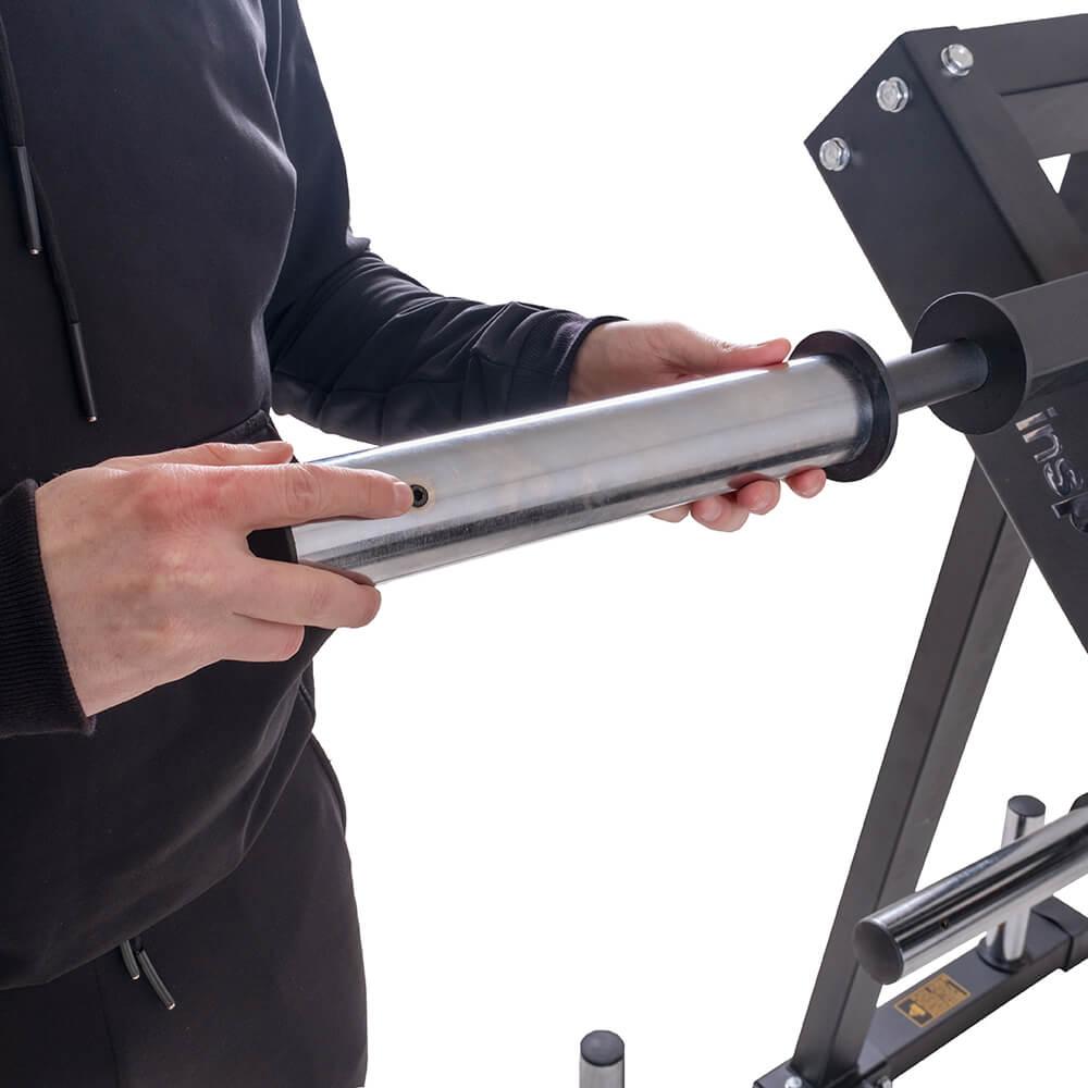 Zátěž regulujete pomocí kotoučů, a to až do maximální hmotnosti 300 kg. Díky možnosti odšroubovat vrchní obal krytu můžete použít kotouče s otvorem 50 mm, 30 mm i 25 mm. Nejvyšší možná váha uživatele je 200 kg, což by mělo vyhovovat i těm největším borcům.