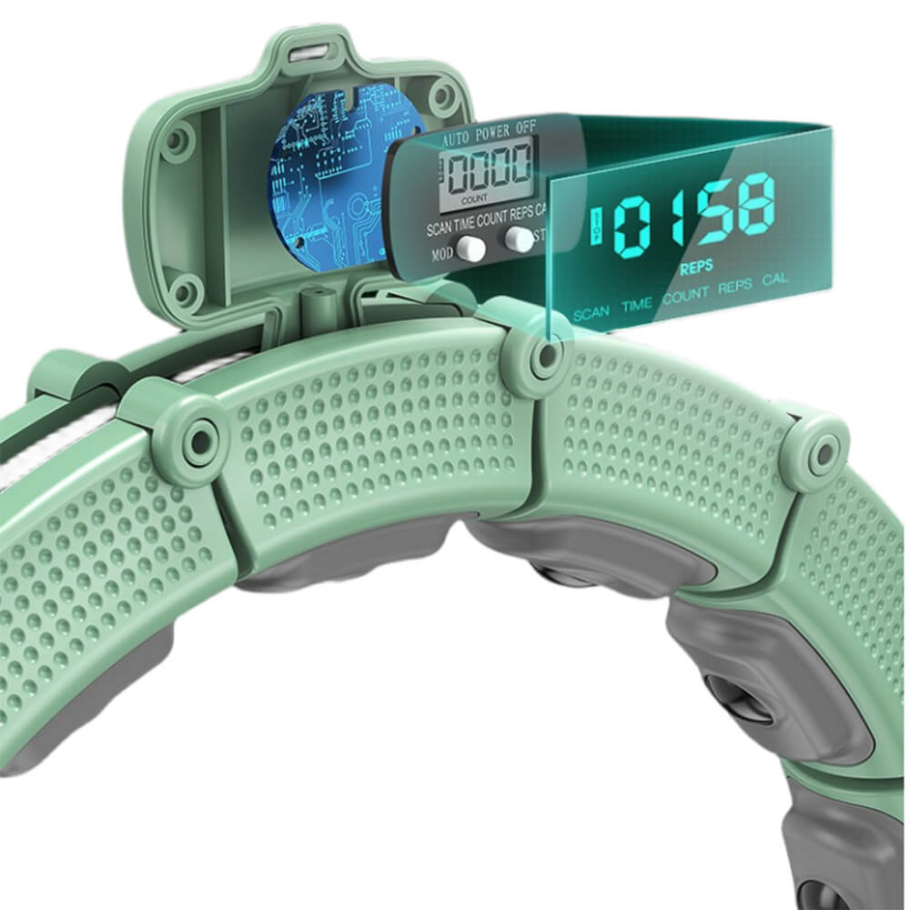 Každý dílek obruče obsahuje vnitřní kolejnici a masážní výstupek s magnetem. Na obruč je napojená kotva se čtyřmi kuličkovými ložisky, které zajištují plynulý chod. Na kotvu navazuje LCD displej, který poskytuje užitečné informace o vašem tréninku jako je čas, spálené kalorie, počet obkroužení za minutu a celkový počet od začátku.