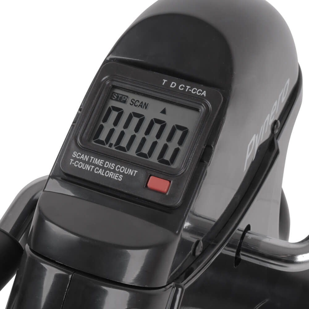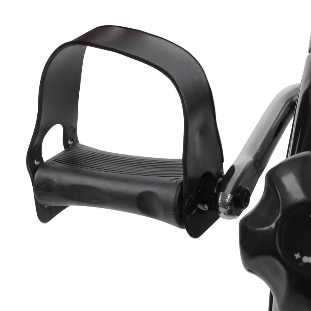 Nožky s protiskluzovou úpravou zaručují stabilitu a díky ergonomicky tvarovaným pedálům/rukojetím je pohodlné šlapání i točení rukama.