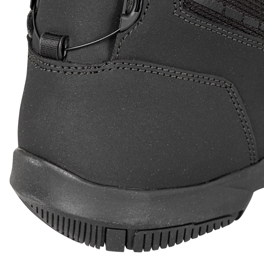 Díky vysoké konstrukci poskytují ochranu nejen chodidla, ale i holeně – integrovaná výztuha kotníku, zpevněná špička i pata a ochranná vrstva řadičky jsou připraveny čelit nástrahám silnice i nepředvídatelným situacím. Dvojité švy přispívají k pevnosti a dlouhé životnosti, zatímco syntetická kůže jako vnější materiál nabízí odolnost i při zachování nízké hmotnosti.