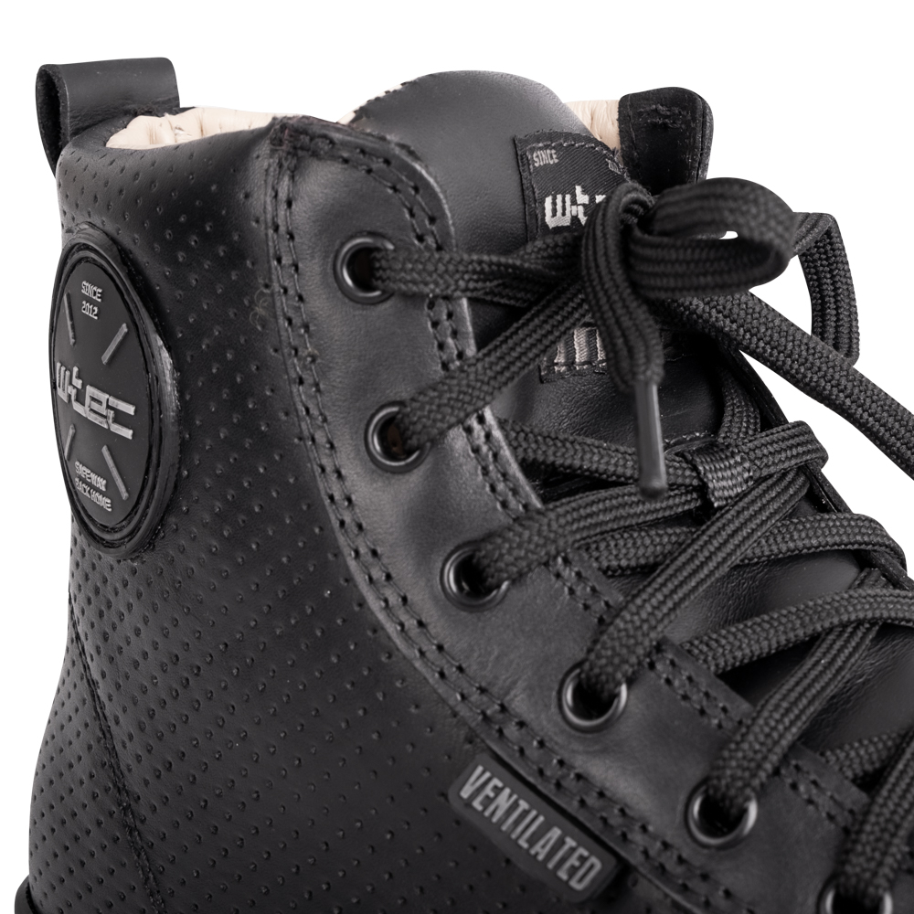 Stylové moto boty z pravé perforované kůže s koženou podšívkou, ochranou kotníků a zesílenou protiskluzovou podrážkou.. Styl na cestách s moto botami W-TEC Ravito!