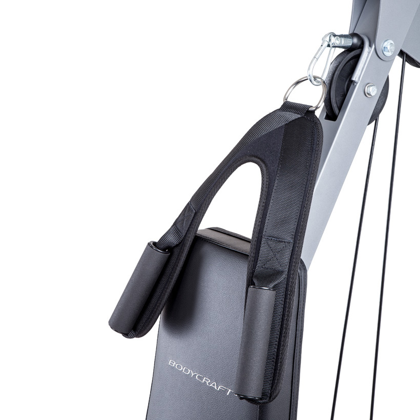 Mezi další přednosti patří sklolaminátové nylonové kladky s kuličkovými ložisky, které se starají o samotný chod závaží, a to o hmotnosti 63 kg. Pružná ocelová lanka se pak starají o plynulý a tichý chod. V neposlední řadě disponuje multifunkční posilovací věž Body Craft MiniX ortopedickou opěrkou, která poskytuje maximální oporu zad a beder.
