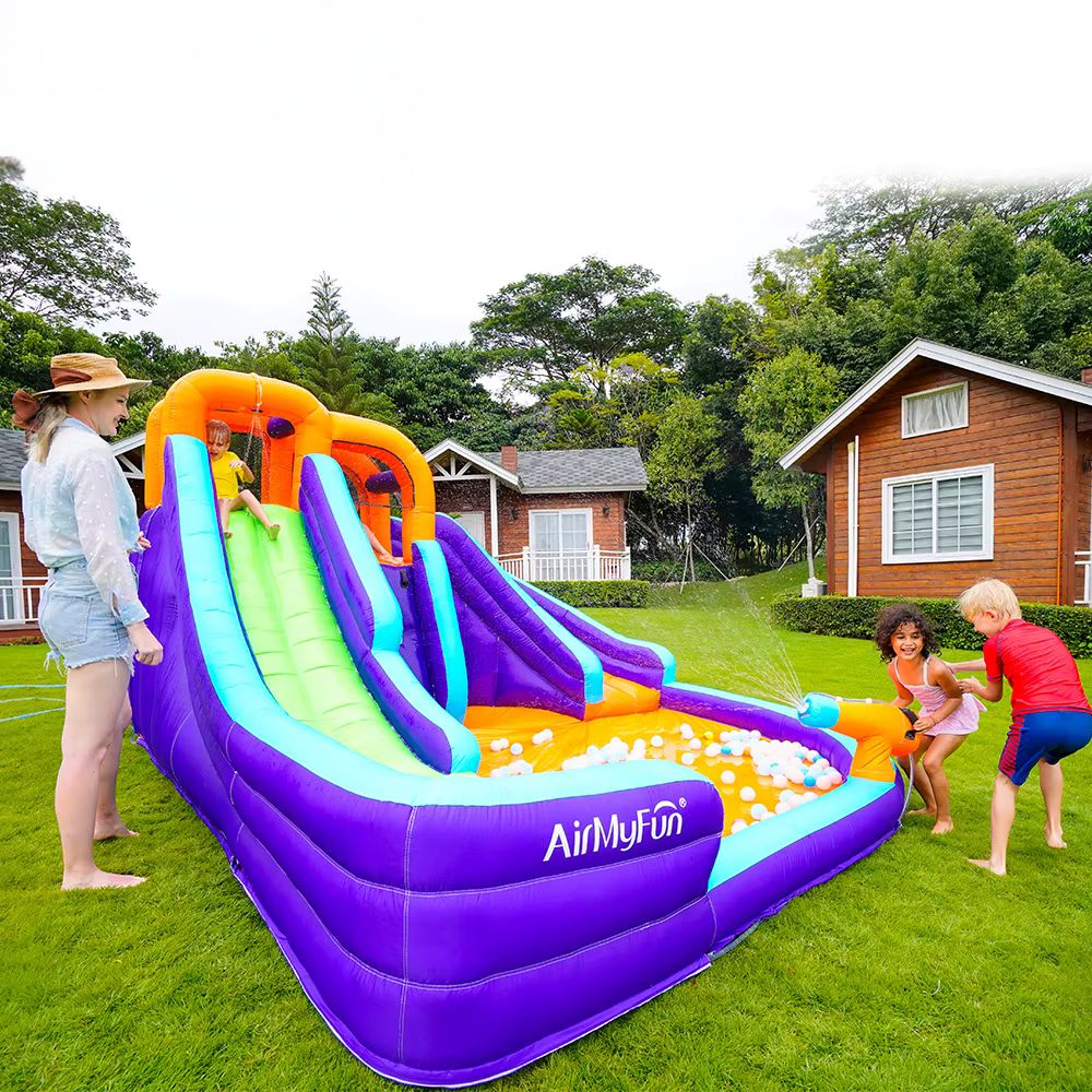 Velká skluzavka, tobogán, lezení i vodní zóna pro horké letní dny. Nafouknete za malý okamžik!. Nafukovací hrad AirMyFun Double Slide 83006 – dobrodružný park, který děti nechtějí opustit!