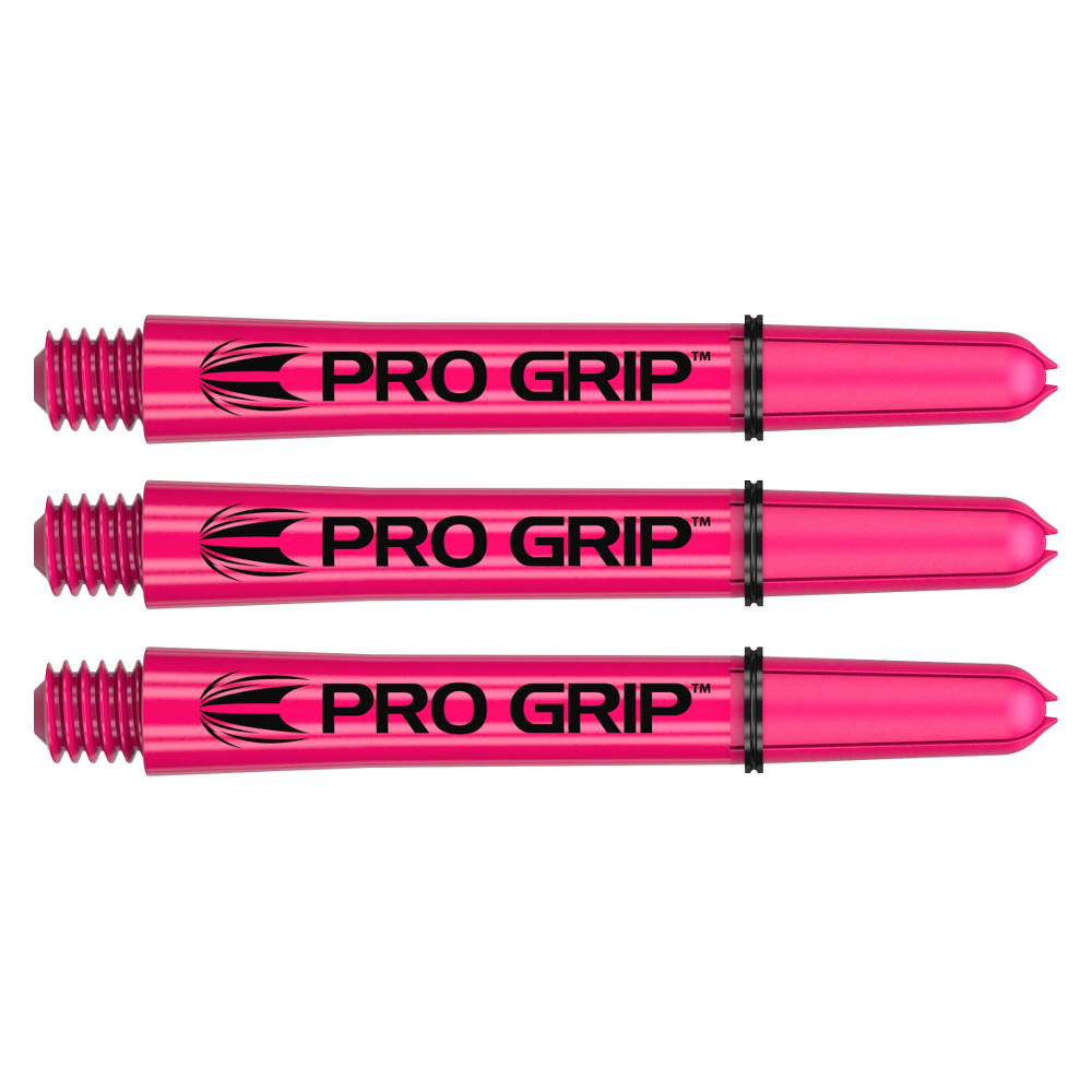 Sada 9 středně dlouhých nylonových násadek na šipky.. Target Pro Grip Pink Intermediate 3×3 ks je sada devíti šipkových násadek ve středním provedení o délce 41 mm. Jsou vyrobeny z pevného a odolného nylonu, který zaručuje odolnost a jistý grip. Jasné barvy pak propůjčují celé šipce zářivý design.Technický popis: