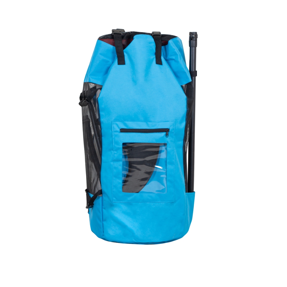 2x trojdílné hliníkové pádlo s nastavitelnou délkou (160 – 220 cm; nastavujte pouze po označení STOP), pumpa s adaptérem, 2x bezpečnostní leash, batoh na přenášení, ploutev a opravná sada součástí balení