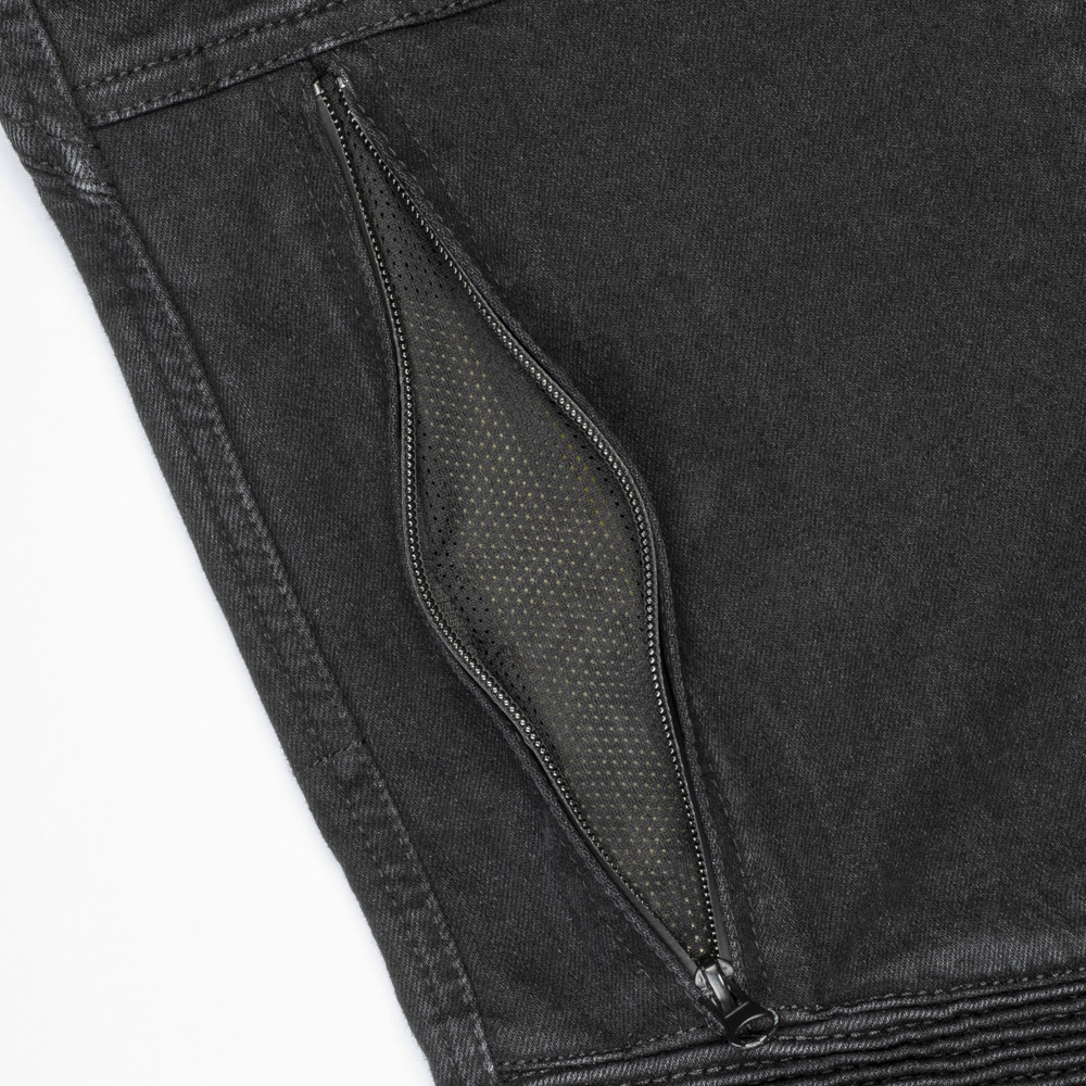 Vnější tkanina z 12oz denimu Super Stretch pak činí kalhoty vysoce komfortní a přizpůsobivé konturám postavy. Rozšířená nabídka velikostí pokrývá i extra nadměrné velikosti. Krátký YKK zip o velikosti 8 umožňuje propojení kalhot s motorkářskou bundou. Uvedené detaily dodávají těmto všestranným kalhotám ještě širší možnosti použití oproti minulé generaci.Technický popis: