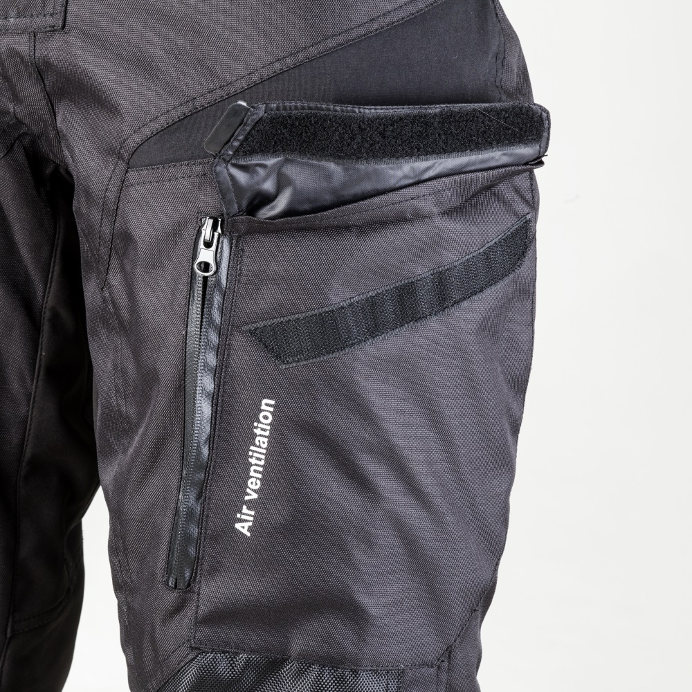 Ve dnech, kdy počasí příliš nepřeje, uživatele jistě ocení vnitřní odnímatelnou nepromokavou a tepelnou vložku. Praktičnost kalhot ještě zvýrazňují čtyři prostorné kapsy. Elastické panely na bedrech, v pase a speciální softshellové prvky v zadních ohybech kolen poskytují větší komfort a neomezují proto jakýkoliv pohyb jezdce. Navíc se v sedací oblasti nachází protiskluzová aplikace, která zvyšuje přilnavost kalhot na sedlo motorky.