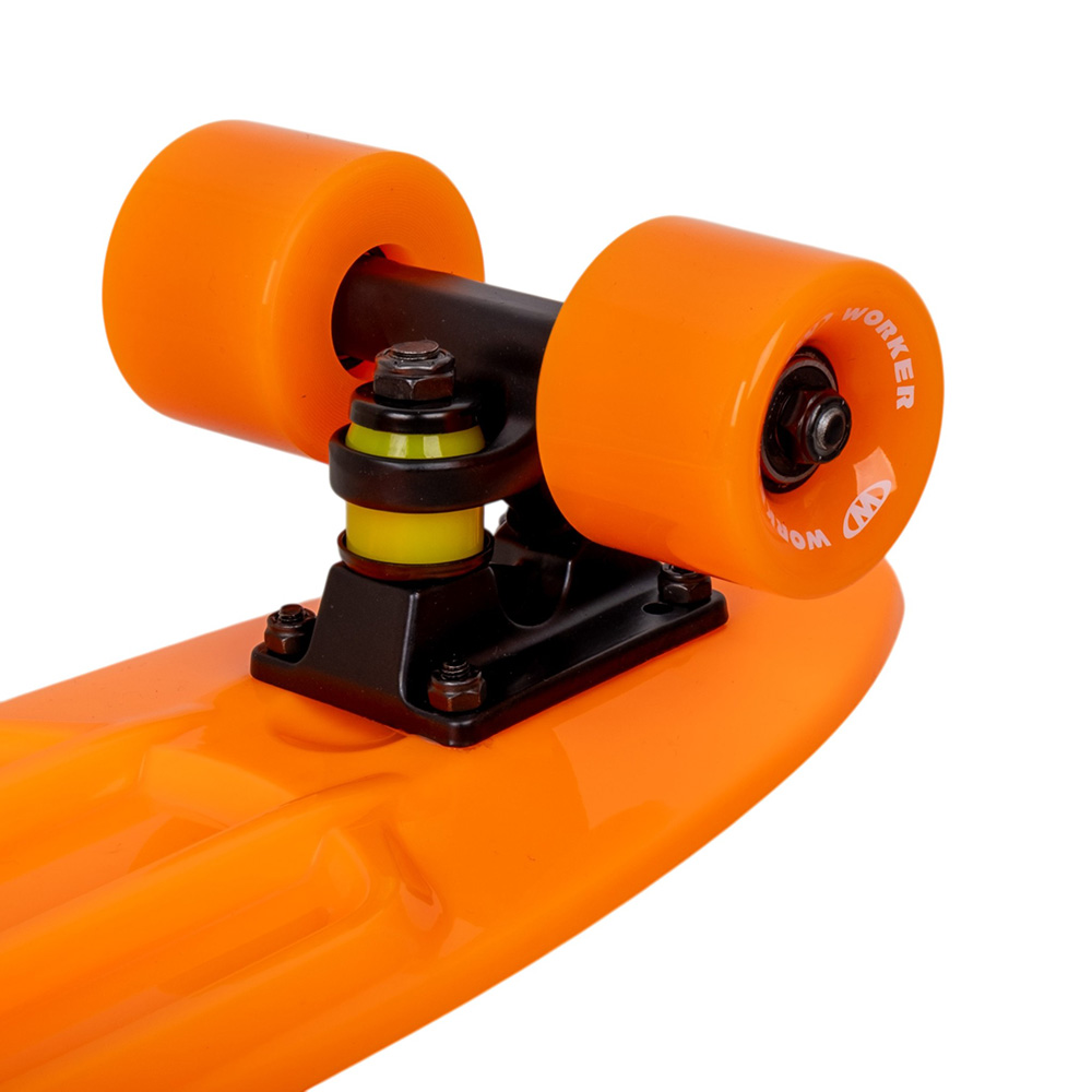 Plastový skateboard, kicktail cruiser vhodný do města.. Penny board WORKER Aspy C5 22″ je malý, hravý cruiser, který ve městě rozhodně nezapadne. Kompaktní rozměry, nízká hmotnost a kicktail tvar z něj dělají ideálního parťáka na rychlé přesuny, chill jízdu po promenádě i večerní projížďky.
