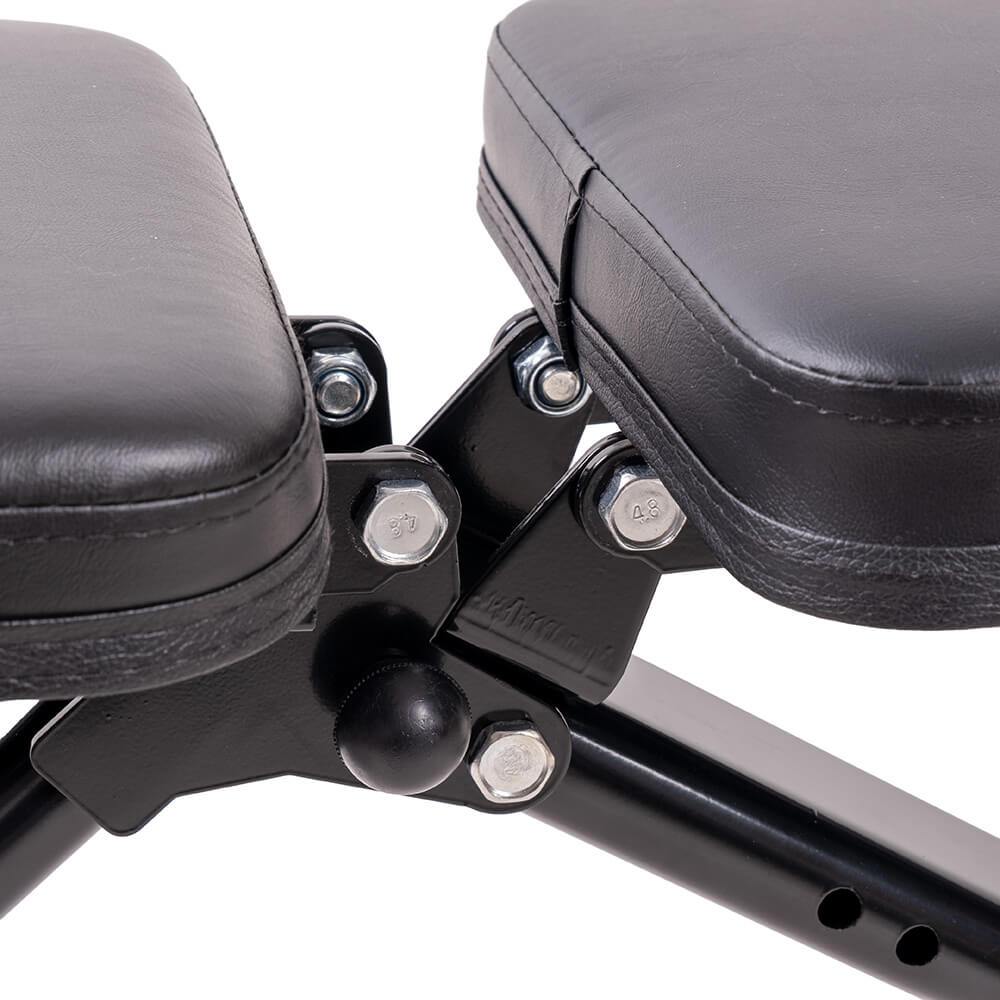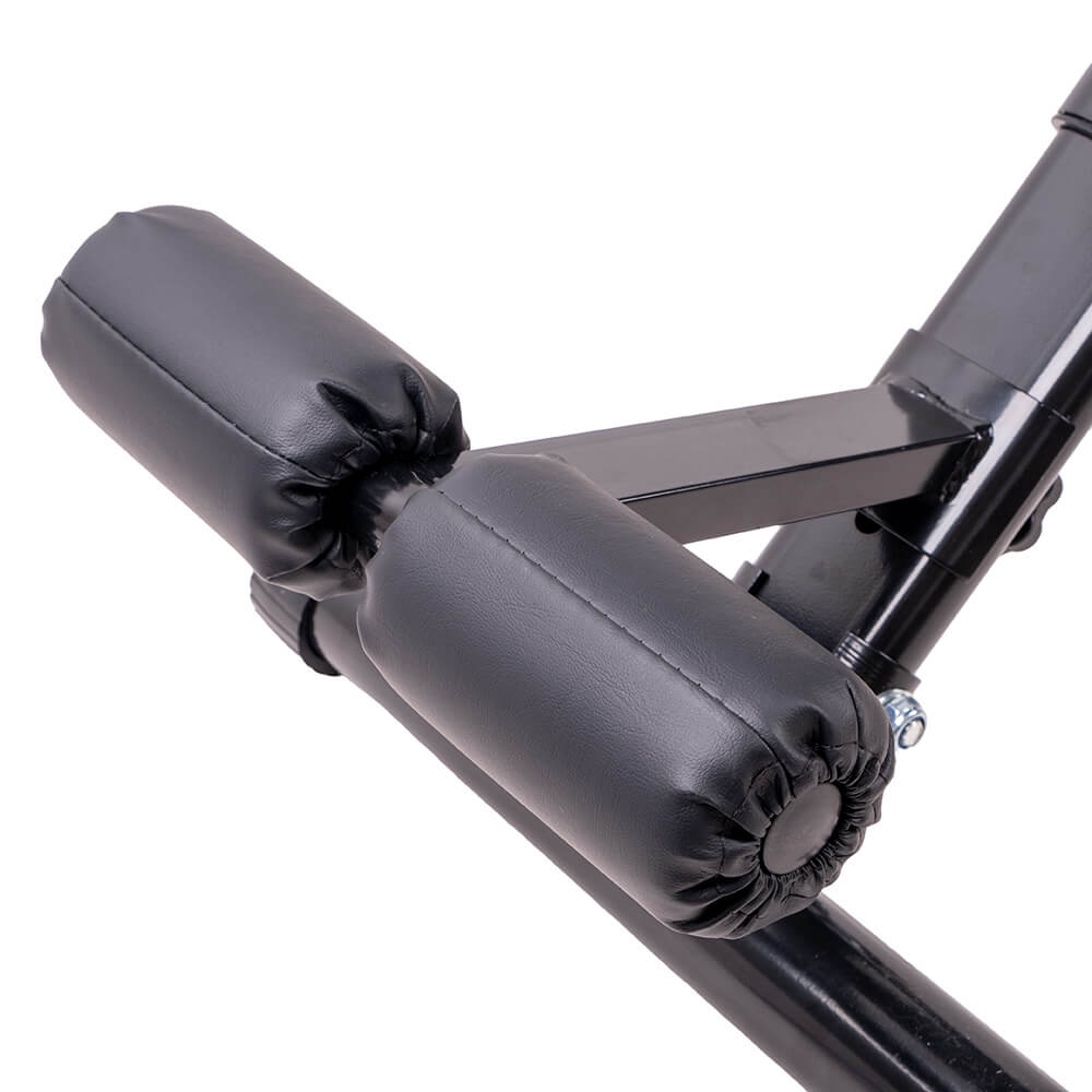 Komfort, který ti dovolí trénovat déle a efektivněji. Polstrování o tloušťce 5 cm s hustou pěnovou výplní se přizpůsobí tělu, snižuje tlak a pomáhá omezit únavu. Ergonomické opěrky na nohy s měkkými polštáři poskytují stabilní a pohodlnou oporu během náročnějších cviků. Výsledek? Lepší soustředění, vyšší výkon a maximální pohodlí při každé sérii.Technický popis: