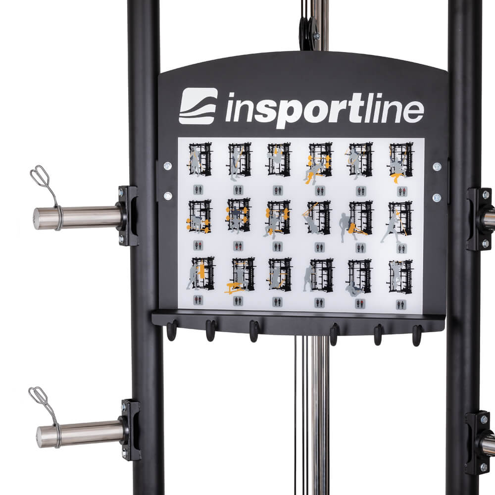 Parádní multifunkční stroj, se kterým už nikdy nebudete muset do posilovny! S kombinací posilovací klece, smith stojanu, systému kladek a hrazdy dokonale posílíte celé tělo!. Hledáte plnohodnotnou náhradu za profesionální posilovnu, která se vleze k vám domů? Pak je posilovací stojan inSPORTline Cable Column CC410 to ideální náčiní právě pro vás! Tato všestranná robustní konstrukce totiž kombinuje posilovací klec, „smith machine“, systém kladek a dokonce i multifunkční hrazdu v jeden kompaktní stroj a nabízí tak komplexní trénink prakticky celého těla. Systém protisměrných kladek využívá jako zátěž olympijské kotouče o maximální hmotnosti 200 kg. Nepoužívané kotouče lze pak bezpečně uložit na odkládací trny po stranách.