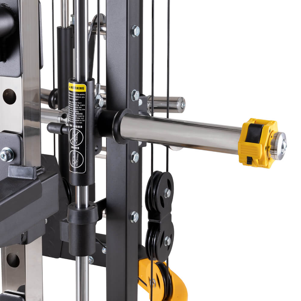 Vodící tyče s protiváhou a prvotřídními ložisky zajišťují krásně plynulý pohyb, a hlavně bezpečný trénink! Díky bezpečnostnímu zámku si bez problému zatrénujete i bez dohledu další osoby.