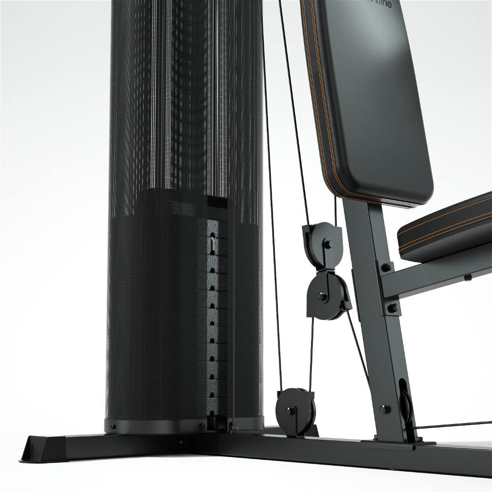 S integrovanou lavicí můžete trénovat bench press a tlaky v sedě. Madla na posilovacích ramenech je možné uchopit hned několika způsoby tak, jak vám to nejlépe vyhovuje. Další výhodou je také možnost zaměřit se na bicepsy za pomoci opěry předloktí. K dispozici máte také horní a spodní kladku s obouručními adaptéry pro cvičení v sedě i ve stoje.